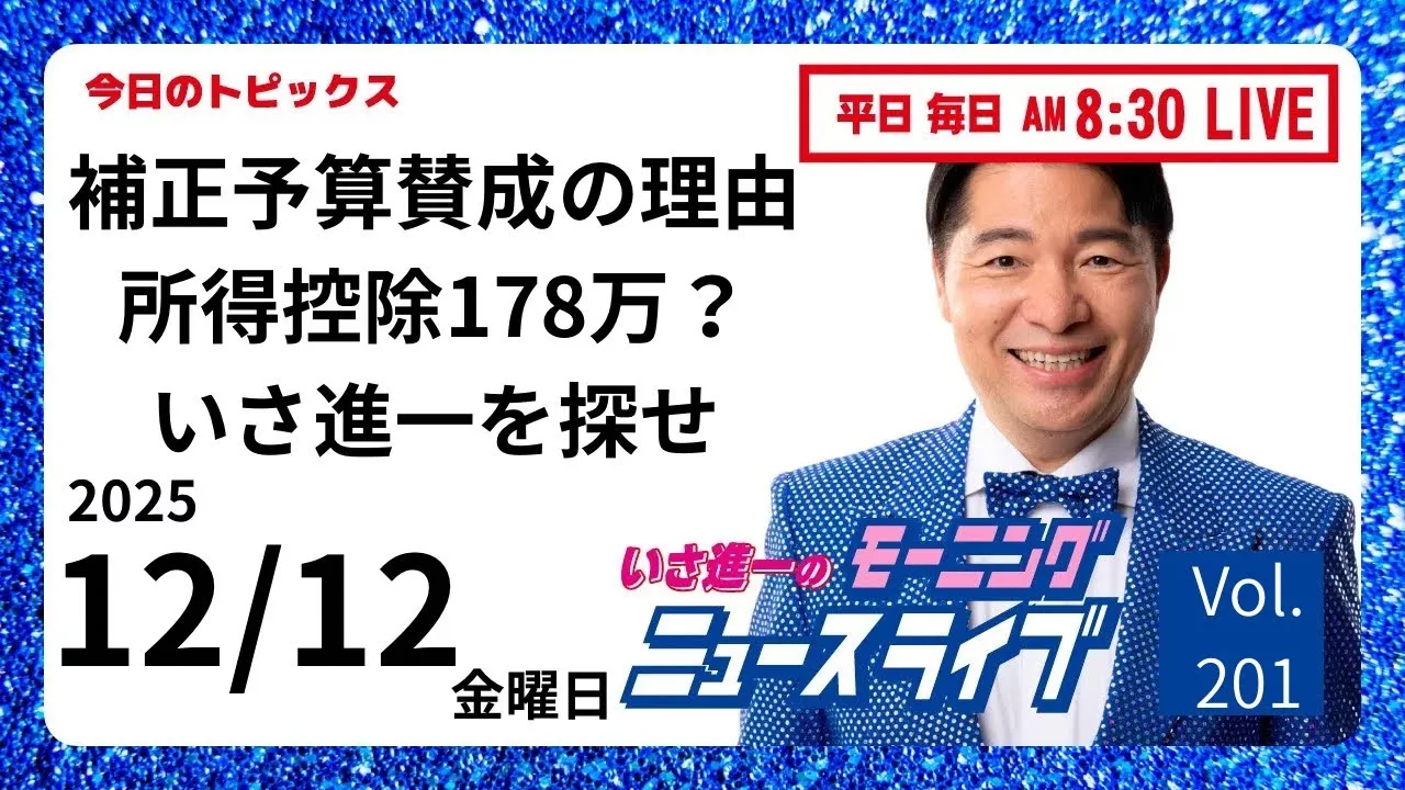 [Morning News Live] Carefully selected news you need to know! Shinichi Isa gives live commentary on newspaper information and news checks [10-minute commentary / political news / live stream] In addition to the latest news from the day, he also offers his unique perspective on hot topics and rumored stories, thoroughly examining lies and rumors to honestly tell you the truth! Live stream every weekday morning! =============== ↓↓↓Please subscribe↓↓↓ https://www.youtube.com/user/isa1341ch?sub_confirmation=1 Isa Shinichi Official Website http://isa41.net/ Isa Shinichi Social Media [X] https://x.com/isashinichi [Facebook] https://www.facebook.com/isashinichi.1341 [TikTok] https://www.tiktok.com/@isa.izazenshin #Recommended #Japan #LiveStream #PoliticalNews #Newspaper #Latest #Information #IsaShinichi #Politics #Commentary
