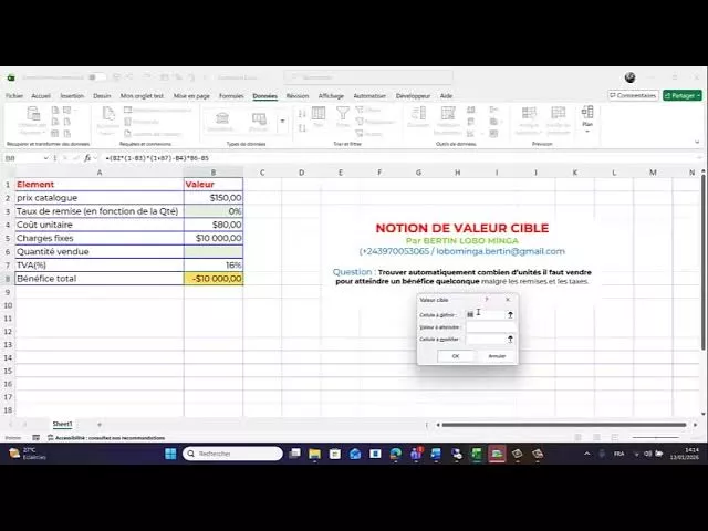 On this page you can download the media «NOTION DE VALEUR CIBLE EN EXCEL : Partir du résultat aux données. Par Bertin LOBO (+243970053065)» highest quality possible WITHOUT any restrictions on the number of downloads or download speed.