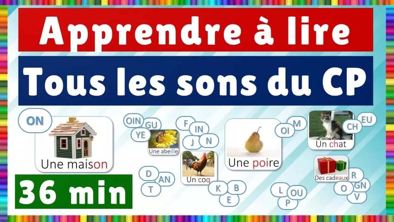 Apprenez la lecture de tous les sons en langue française. Ce contenu reprend toutes les leçons de français à destination des élèves du CP. Elle est également parfaite pour accompagner les personnes en cours d'apprentissage de la langue française. Le contenu de cette vidéo est en français. Abonnez-vous pour recevoir nos dernières vidéos. Notre page TIPEEE pour nous soutenir : https://fr.tipeee.com/eveiller-mon-enfant Notre livre au format ebook : https://amzn.to/2HHXRbc Notre livre au format papier : https://amzn.to/2HAVCqi 0:00 Intro 0:08 Le son(r) 0:58 Le son(oi) 1:57 Le son(l) 2:58 Le son(ou) 3:59 Le son(eu) 4:53 Le son(o) 7:15 Le son(p) 8:15 Le son(t) 9:27 Le son(k) 11:27 Le son(é) 13:20 Le son(an) 14:55 Le son(on) 16:28 Le son(d) 17:24 Le son(m) 18:30 Le son(n) 19:40 Le son(f) 21:29 Le son(v) 22:43 Le son(in) 25:13 Le son(b) 26:19 Le son(gu) 28:21 Le son(ch) 29:27 Le son(j) 31:44 Le son(ye) 33:54 Le son(oin) 35:14 Le son(gn) #EME #sons #CP #lire