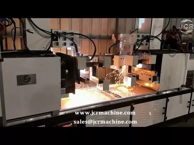 How to weld the pallet rack beam to bracket/ end clip automatically by fast speed with steady working? JCR racking beam to bracket auto welding machine can achieve it ? Main rotation system for double working stations, sub rotations for all sides welding by only 4 servo controlled welding guns, reliable design and stable production, PLC+touch screen for whole control system. www.jcrmachine.com sales@jcrmachine.com Mobile/ Whatsapp/Wechat: +86-13751724922 (Rachel Chen)