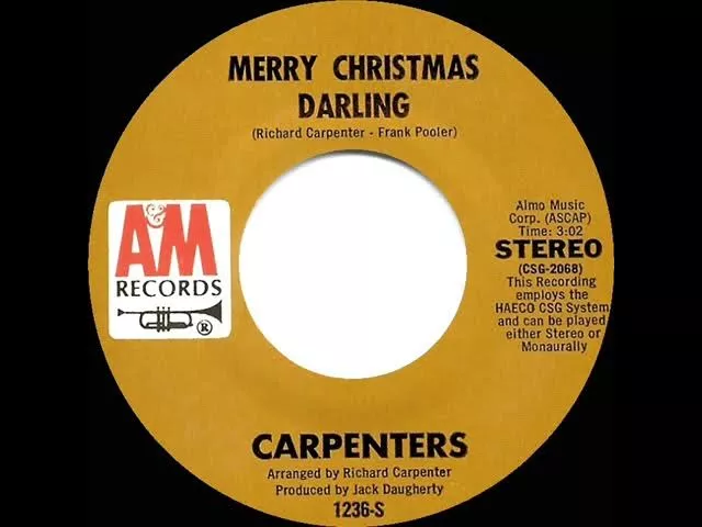 Here’s the enchanting original 1970 recording (the 1978 Carpenters LP version featured a different vocal track by Karen). Richard’s new melody was attached to song lyrics written in 1944 by 18-year-old Frank Pooler, who passed them along in 1966 while serving as Karen & Richard’s choral director at California State University-Long Beach. 1970 Cash Box Pop Chart Peak: 41 - Billboard Holiday Airplay Chart: 1 (at that time neither Billboard nor Record World included seasonal titles on their regular ‘pop’ singles charts) Transferred from stereo 45 single A&M 1236 - Merry Christmas Darling (Richard Carpenter-Frank Pooler) by the Carpenters, arranged by Richard Carpenter, produced by Jack Daugherty THE 1970 HITS ARCHIVE - Here in one place, a comprehensive collection of ‘pop’ best-sellers and songs which made an impact that were either released or enjoyed a major chunk of their popularity within the calendar year 1970 (some were recorded in 1969) And visit my popular YouTube playlist “Vintage Christmas & Winter-Seasonal Recordings” for more than 400 Holiday hits and obscurities, largely from the 1940s thru 1960s but some earlier and some later. https://www.youtube.com/playlist?list=PLx8kU_D2e4vrAMpSZ8UEmxf1ZSbnQSxUA