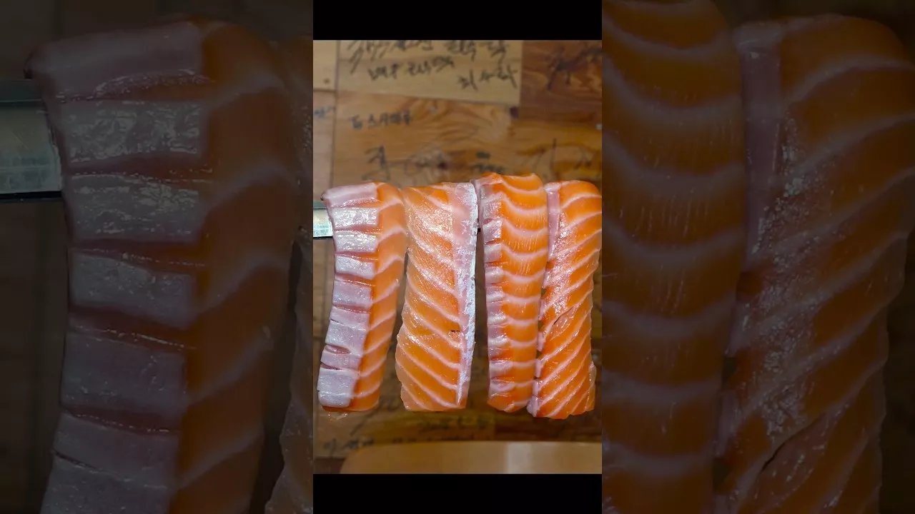 😋 Amazing! Salmon sushi that is 3 times longer than regular sushi. / Korean street food┃일반 초밥보다 3배 큰! 가위로 잘라 먹는 연어로 대박난 초밥집 #shorts #Sushi [ 💬 Information ] 🚩 위치(Location) 서울 영등포구 선유로23길 7 1층 '스시마루 영등포점'( *체인점 아님*) : https://naver.me/FAQY1KAF : https://goo.gl/maps/atBqQyEbk2Qo5cXb6 ❤️ 한식도 아닌 초밥집인데 한국인의 밥상까지 나온 스시마루 영등포점입니다. 25년째 취약계층에 라면,쌀, 초밥 등 무료봉사하시는 스시마루형님이란 애칭의 사장님입니다.^^ - - - - - - - - - - - - - - - - ❤️ - - - - - - - - - - - - - - - - 💌 촬영 요청 및 제보(Foodieland contact E-mail) : kgkji83@gmail.com ⛔ 알려드립니다! (Announcement) 👍🏻 영상을 재밌게 보셨다면 '구독과 좋아요' 부탁드려요.^^ 🔔 푸디랜드 구독 (FoodieLand subscribe : https://youtube.com/@FoodieLand) ❤️ 푸디랜드는 다양한 길거리 음식들을 맛있고 즐겁게 소개하고 있습니다! ❤️생생한 ASMR 팅글 사운드로 영상을 더 맛있게 즐겨보세요! ✅ 본 영상은 유료 광고를 포함하고 있지 않음을 알려드립니다. 🔎 #shorts #초밥 #Sushi
