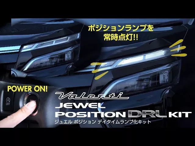 パワースイッチONでポジションランプが点灯。 純正フロントポジションランプをデイタイムランプ化し、スタイリッシュにアピール。 日中の視認性アップで安全性も向上します。 車種別コネクタ付きハーネス付属でイグニッション電源以外はカプラーオンでの取り付けが可能です。 ◇パワースイッチONでポジションランプが点灯 純正フロントポジションランプをデイタイムランプ化し、スタイリッシュにアピール。 ◇視認性アップで安全性向上! 昼間時でもポジションランプを常時点灯させることで視認性がアップし、安全性が向上します。 ※光量を増幅させる製品ではありません。 ◇フロントポジションランプだけが点灯 昼間にポジションランプを点灯するとナビゲーション画面が暗く見にくくなりますが、デイタイムランプ化キットは フロントポジションランプのみ点灯させるため画面の明るさはそのままです。 ◇車種別コネクタ付きハーネス付属 イグニッション電源以外はカプラーオンでの取り付けが可能です。 ◇純正復帰機能付 本体の切り替えスイッチで純正への復帰も簡単にできます。 【ジュエル ポジション デイタイムランプ化キット】 品番 適合車種 型式 年式 備考 JAN DRL-KIT01 トヨタ ヴォクシー/エスクァイア/ノア ZRR8#/ZWR80 H26.1~ 前期型・後期型 純正LEDポジション車 4589888750994 トヨタ プリウスα ZVW4# H26.11~ 後期型 LEDヘッドランプ装着車 DRL-KIT02 トヨタ 86/スバル BRZ ZN6/ZC6 H24.3~ 前期型・後期型 純正LEDポジション車 4589888751007 トヨタ タンク/ルーミー スバル ジャスティ ダイハツ トール M9#0 H28.11~R2.8 純正LEDポジション車 DRL-KIT03 日産 セレナ/スズキ ランディ C27 H28.8~ 純正LEDポジション車 ※本製品を装着するとウェルカムライト作動時、フロントポジションランプは点灯しなくなります。 4589888751014 DRL-KIT04 トヨタ C-HR ZYX10/NGX10/NGX50 H28.12~ ハロゲンヘッドランプ装着車 4589888751021 DRL-KIT05 トヨタ ハリアー ZSU6#/AVU65 H25.12~H29.6 前期型 純正LEDポジション車 4589888751038 ○車検対応 ○1年保証 ご注意 ・本製品は純正フロントポジションランプ専用品です。その他のランプには使用しないでください。 ・本製品はパワースイッチオンで純正フロントポジションランプを点灯させるためのものです。光量を増幅させる製品ではありません。 ・本製品を取り付けた際に点灯するポジションランプ部分は保安基準上の「その他灯火」に該当します。 ・本製品の仕様上、パワースイッチオフでポジションランプを点灯した場合、フロントポジションランプは点灯しません。 ・本製品は保安基準に準じた設計をしておりますが、検査員によってはまれに保安基準不適合と判断される場合があります。 ヴァレンティ製品は全国のカー用品店にてご購入頂けます。 ヴァレンティ公式ONLINEショップからもお買い求めいただけます。 公式:https://valenti-onlineshop.com/view/item/000000000822?search=LFG&sort=