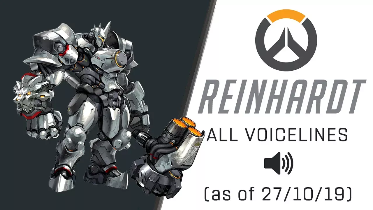 All the voice lines for Reinhardt, with timestamps ! 0:00 Are you afraid to fight me ? 0:04 Bring me another ! 0:07 Catch phrase ! 0:10 Crusader online. 0:13 I'm the ultimate crushing machine ! 0:19 Precision German Engineering. 0:23 Honor and Glory 0:27 I salute you ! 0:30 Respect your elders. 0:34 Let me show you how it's done. 0:38 Ahhh, this old dog still knows a few tricks. 0:44 You shame yourself. 0:47 100% German power. 0:53 Oooh, gliterring prizes ! 0:57 Smashing. 1:00 What do we have here ? 1:03 Forgive and forget, like snow from yesteryear. 1:09 You're on my naughty list. 1:14 Are you chicken ? 1:17 Fortune favors the bold. 1:21 Easy does it 1:25 Prost ! 1:28 Unstoppable ! 1:32 Beer ! 1:34 Come here... 1:38 Fetch me my hammer ! 1:42 HONOR ! JUSTICE ! REINHARDT REINHARDT REINHARDT, HAHAA ! #overwatch #blizzard #reinhardt Endscreen Music: Bensound.com - Energy (Thanks!)