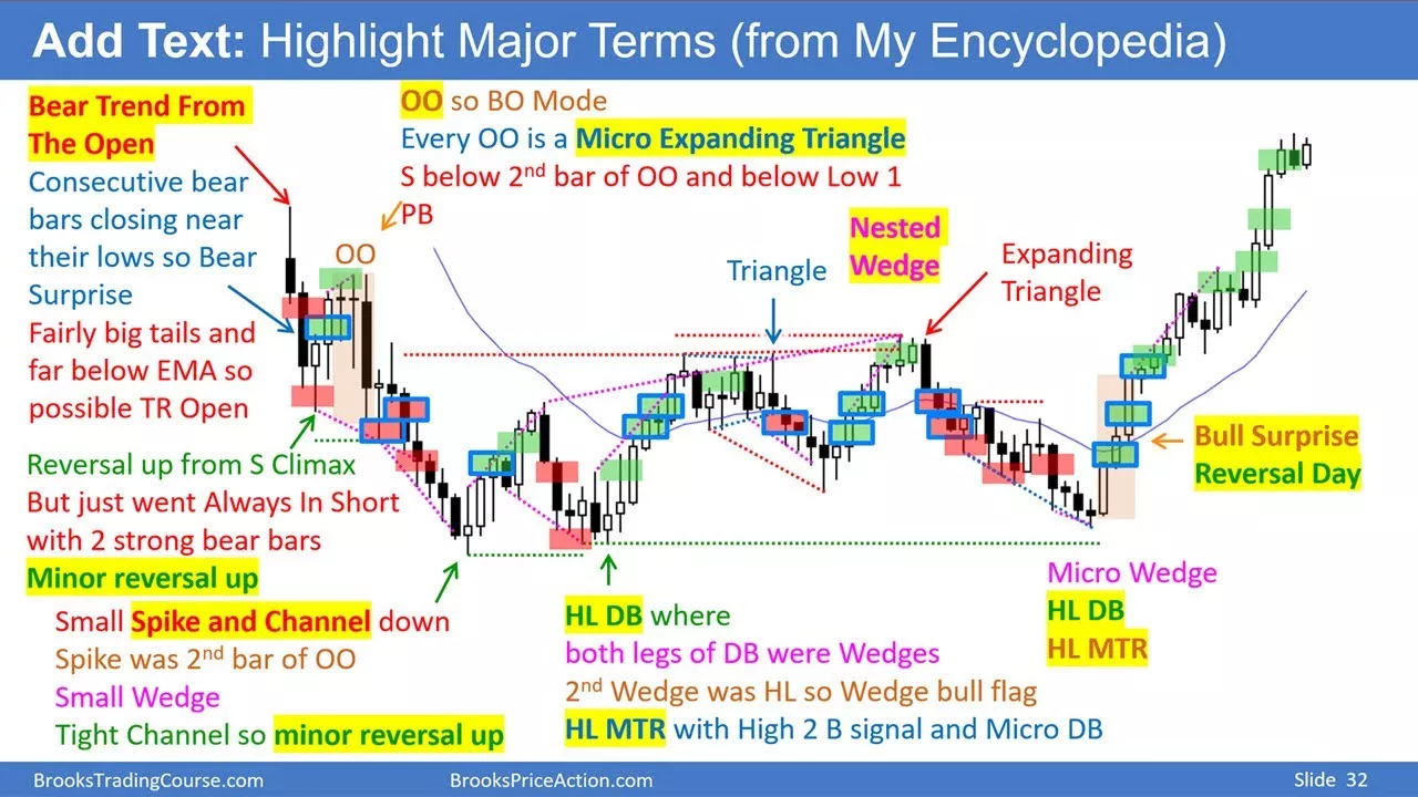 Al Brooks' approach in 5 steps to finding today's trades. How to recognize patterns to anticipate what will follow to structure and manage trades successfully. Full transcript on website here: https://www.brookstradingcourse.com/trading-strategies/5-steps-to-finding-todays-trades/ Visit the Brooks Trading Course website for Emini S&P 500 and EURUSD Forex daily reports, weekend market analysis reports, many articles, audio and video extracts, and much more. Website Blog: https://www.brookstradingcourse.com/price-action-trading-blog/ Facebook Group: https://www.facebook.com/unsupportedbrowser Discord Server: https://discord.com/invite/Dvcpa4 ------------------------------------------------------------------------------------------------------------------------ Risk Disclosure: Futures and Forex trading contains substantial risk and is not for every investor. An investor could potentially lose all or more than the initial investment. Risk capital is money that can be lost without jeopardizing ones’ financial security or life style. Only risk capital should be used for trading and only those with sufficient risk capital should consider trading. Past performance is not necessarily indicative of future results. Hypothetical Performance Disclosure: Hypothetical performance results have many inherent limitations, some of which are described below. No representation is being made that any account will or is likely to achieve profits or losses similar to those shown; in fact, there are frequently sharp differences between hypothetical performance results and the actual results subsequently achieved by any particular trading program. One of the limitations of hypothetical performance results is that they are generally prepared with the benefit of hindsight. In addition, hypothetical trading does not involve financial risk, and no hypothetical trading record can completely account for the impact of financial risk of actual trading. for example, the ability to withstand losses or to adhere to a particular trading program in spite of trading losses are material points which can also adversely affect actual trading results. There are numerous other factors related to the markets in general or to the implementation of any specific trading program which cannot be fully accounted for in the preparation of hypothetical performance results and all which can adversely affect trading results. ------------------------------------------------------------------------------------------------------------------------