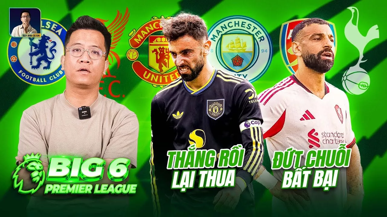BIG 6 PREMIER LEAGUE: MAN UNITED, CHELSEA, LIVERPOOL ĐỀU THUA, MAN CITY, ARSENAL MỪNG THẦM Vòng đấu thứ 6 Premier League chứng kiến hàng loạt biến động ở nhóm Big six. Man United thua Brentford, Chelsea gục ngã trước Brighton, còn Liverpool đứt mạch toàn thắng khi thất bại trước Crystal Palace. Tottenham hòa kịch tính Wolves nhờ bàn gỡ phút bù giờ, trong khi Man City khẳng định sức mạnh với chiến thắng 5-1 trước Burnley cùng phong độ bùng nổ của Doku và Haaland. Giữa bối cảnh đó, Arsenal trở thành đội “cười âm thầm”, dù hàng công chưa thật sự khởi sắc nhưng họ vẫn duy trì bản sắc chắc chắn và sẵn sàng bứt phá khi các tân binh hòa nhập. SUBSCRIBE KÊNH: https://www.youtube.com/user/viendongquan?sub_confirmation=1 Liên hệ công việc/hợp tác: blvanhquan@gmail.com Facebook: https://www.facebook.com/unsupportedbrowser Tiktok: https://www.tiktok.com/@blv_anhquan ---------------------------------------------------------------- © Bản quyền thuộc về BLV Anh Quân © Do not Reup.