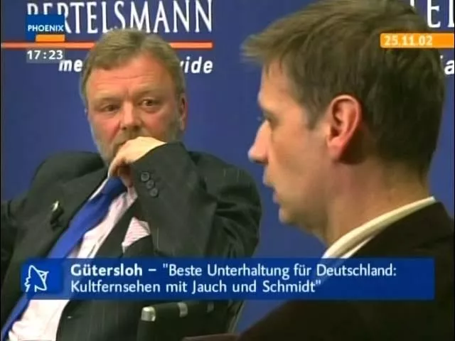 Einstündige Interview-Sendung mit Harald Schmidt und Günther Jauch über Definition und Inhalt von Kultfernsehen. "Phoenix - Die Diskussion" wurde am 25. November 2002 ausgestrahlt.