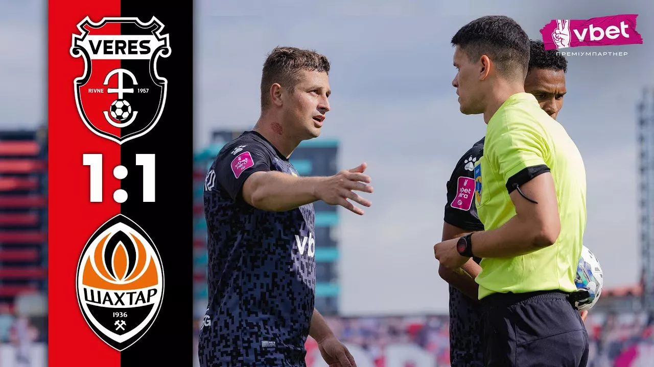 У матчі другого туру УПЛ Верес та Шахтар зіграли внічию. Поєдинок завершився з рахунком 1:1. #УПЛ #ВересШахтар #ОглядМатчу #Рівне #Верес #Шахтар #VERESTV #Лавриненко #НКВерес #ЧемпіонатУкраїни Забирай бонус до 2500 грн від преміумпартнера НК Верес - компанії VBET Ukraine👉 https://vbet.link/eRoPZ9 . . . . . Участь в азартних іграх може викликати ігрову залежність. Дотримуйтеся правил (принципів) відповідальної гри. Ліцензія на провадження діяльності з організації та проведення букмекерської діяльності від 18.01.2022 р. видана ТОВ «ВБЕТ УКРАЇНА» на підставі Рішення Комісії з регулювання азартних ігор та лотерей від 31.05.2021 р. за № 15 ❗Підписуйся на ютуб канал VERES TV, коментуй і ставай частиною нашої команди 🔴 ⚫️ YouTube-канал НК Верес Рівне: ✅ https://www.youtube.com/c/veresclub1957 Ми в соціальних мережах: ✅ Instagram: https://www.instagram.com/veres.club ✅ Facebook: https://www.facebook.com/veres.club ✅ Фан-Шоп: https://www.instagram.com/veresplace/