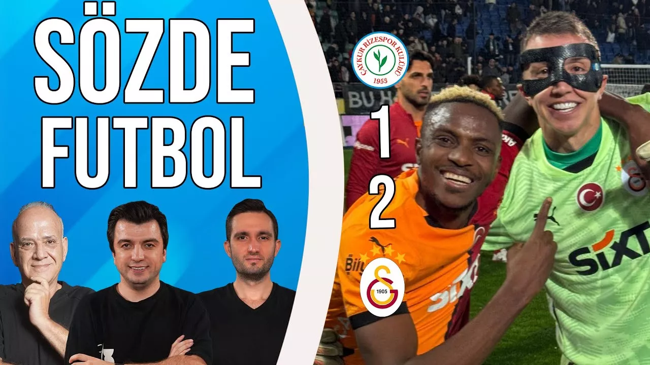 Süper Lig'de lider Galatasaray, zorlu Rizespor deplasmanından 2-1 galip ayrıldı. Galatasaray'ın golleri Victor Osimhen'den geldi. Derbi öncesi puan kaybetmeyen Galatasaray, gözünü derbiye çevirdi. Okan Buruk'un oyun planı son dönemlerde eleştiriliyor. Galatasaray ile ilgili son gelişmeleri ele alıyoruz. Bışar Özbey, Ahmet Çakar ve Samet Süner; maç sonu yorumları ile sizlerle. 🛎️BTV kanalına abone olmak için: https://www.youtube.com/@Bitvonline?sub_confirmation=1 Rizespor 2 - 1 Galatasaray Maç Sonu | Bışar Özbey, Ahmet Çakar ve Samet Süner Diğer sosyal medya hesaplarımız: 🔹Instagram ➤ https://www.facebook.com/unsupportedbrowser 🔹X ➤ https://twitter.com/bitvonline 🔹Tiktok ➤ https://www.tiktok.com/404?fromUrl=/sozdefutbol 🔹Facebook ➤ https://www.facebook.com/unsupportedbrowser Türkiye’nin en hızlı büyüyen Dijital Kanalından Merhaba! Abone olarak ve like atarak bize destek olabilirsiniz. Reklam & İş Birliği için: btviletisim@gmail.com ** BTV resmi YouTube sayfasıdır. The official YouTube channel of BTV.