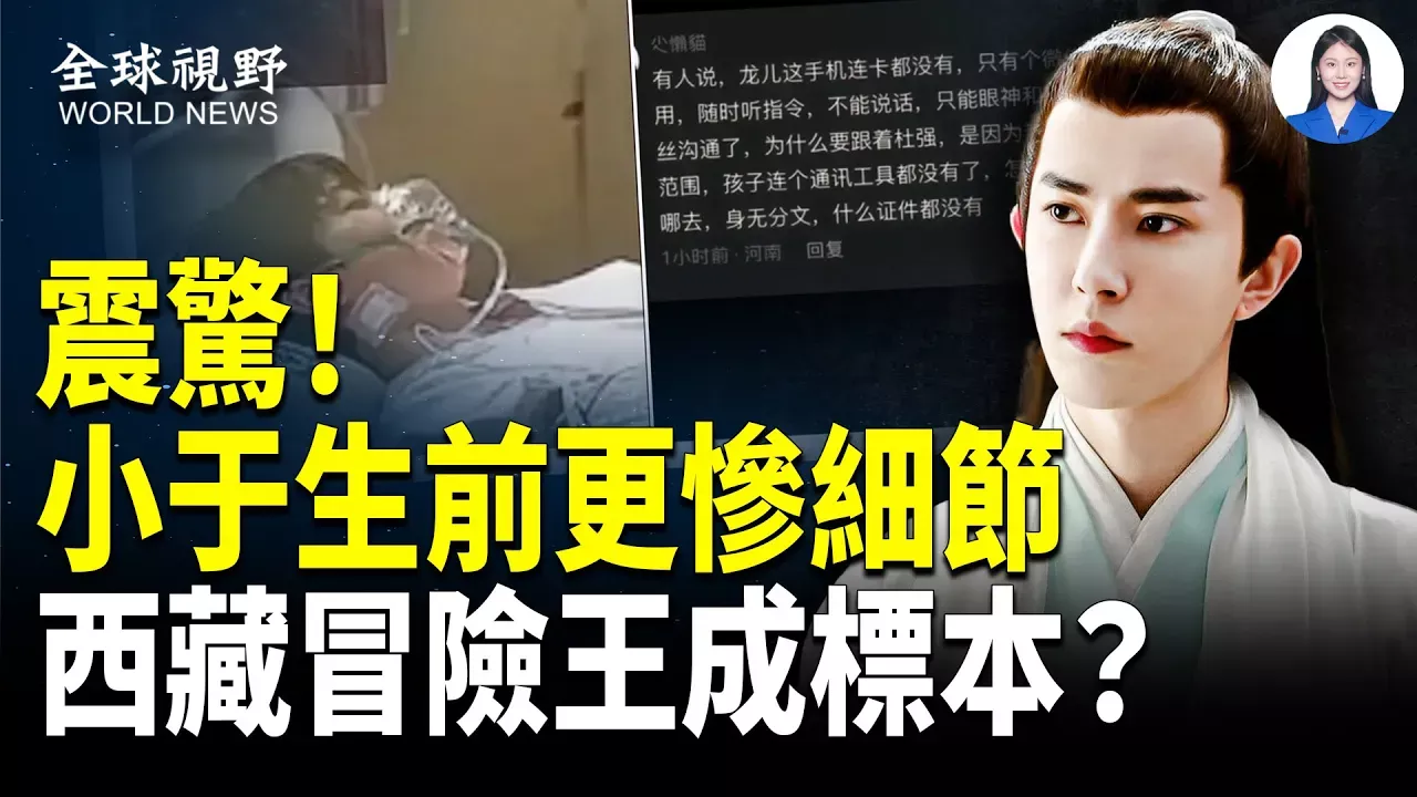 #朦朧案 驚魂!小于生前被預告將成標本? #西藏冒險王 也成標本?華晨宇遭威脅; #頂級粉紅 醒悟,翻牆退黨人數暴增;鐵證!太子集團背後是中共 10月29日 內容提要: 00:37 朦朧案撞擊中共政權 粉紅幡然醒悟 華晨宇遭威脅 07:53 大陸律師揭露中共製造荒唐冤案 遭行業封禁 14:58 中國人:行走的供體庫 10到50歲任意挑選 17:49 雲南某校學生集體發病 有家長惊接病危通知 希望之聲TV《全球視野》節目,每天為您速遞中國、歐洲、北美和國際上的最新消息和重大新聞。深入的專家解讀,精彩的實時評論,為您理清新聞脈絡、讓您即時掌握大事件發展。 💟捐助我們 ►https://donorbox.org/soh-tv 🌻🎈尊敬的觀眾朋友,請留下您的電子郵件,以便有需要之時我們於聯繫您:https://landing.mailerlite.com/webforms/landing/l1l7p9 🚗捐車網址 ► https://donatecarsoh.org/ ☎️捐車熱線:855-578-0088 🤝廣告合作洽談 ► soh-tv@soundofhope.org ㊙️ 爆料郵箱 ► baoliao@soundofhope.org 🍀自動翻牆APP ► https://x.co/ohope 訂閱電子報👉 https://landofhope.tv/%E9%AB%98%E6%BD%94-email ▬▬▬▬▬▬▬▬▬▬▬▬▬▬▬▬ 希望之聲TV (SOH TV)每天會為您及時報導中國、香港,台灣、美國、歐洲等全世界的最新新聞,我們的新聞直播會有知名評論員分析當前的時政新聞、即時新聞和實時新聞等; 希望之聲真相節目深受大陸觀眾喜愛。當前中共已成全世界焦點,習近平治下的中國命運將如何,中國觀察節目會通過紀錄片及記者採訪為您及時報導。 ----------------------