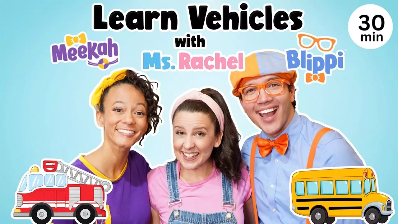 Learn all about vehicles with Ms Rachel, Blippi and Meekah! Get ready to take a bus, ride on a fire truck, play with toy subway trains and open vehicle surprises in this super fun collaboration! Other vehicles in this episode include a garbage truck, plane, car, tractor and a boat! Ms Rachel is a real teacher who incorporates key preschool skills into every episode! This episode is packed with learning and fun nursery rhymes and kids songs of course! We know you will enjoy this toddler learning video that includes curriculum backed by research! Songs featured include: The Wheels on the Bus, Fire Truck, Row Row Row Your Boat, Wishy Washy Whee, This is The Way, Green Means Go, Up & Down, Take the Elevator Up and I Could Be Your Friend. Check out our other videos for kids on our page! We have many other toddler learning videos, preschool learning videos, educational videos for toddlers, toddler songs videos and kids songs videos! After watching this episode, your child may be able to: Say what a vehicle is Name a few vehicles Say that vehicles take people and things where they need to go Be aware of what vehicles they use to get places such a school Sort vehicles by land, air and water Know the meaning of longer and shorter Understand a pattern Imitate actions to nursery rhymes and songs for kids Sing familiar kids songs & nursery rhymes Ask for a turn, trade, share Count Play pretend Understand the meaning of “on” Learn colors Ms Rachel also included social emotional skills during the subway train section. She modeled how to ask for a turn, how to say you are still playing with a toy, how to ask to trade and how to share. We know you’ll love this video with Ms Rachel and Blippi and Meekah! Transportation is such a wonderful topic for preschoolers to learn about! It’s also great for kids and kindergartners. Toddlers also love videos for toddlers about vehicles and transportation. Cars and trucks are so motivating! We know you’ll love our educational videos for kids.