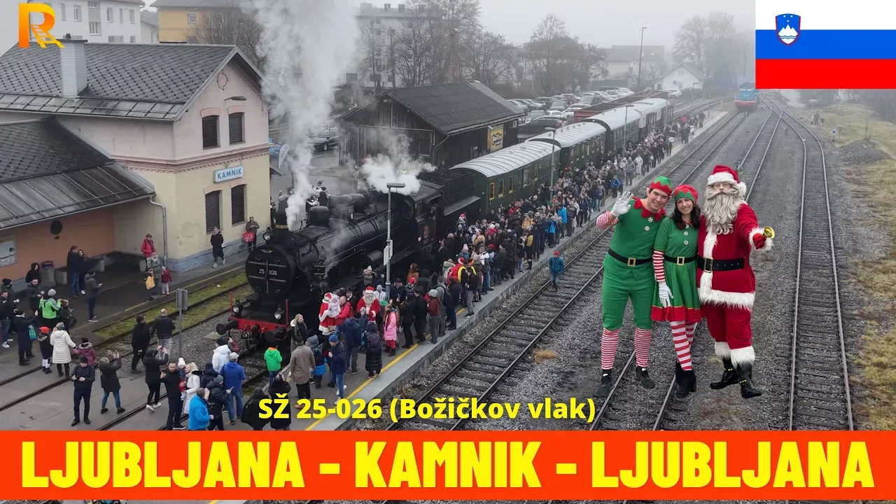 In this video you can enjoy the cab ride - train driver's view on the nostalgic Santa’s Train (Božičkov vlak) from Ljubljana to Kamnik and back to Ljubljana on the Ljubljana - Kamnik railway line in Slovenia, in 4K/60 frames per second. Step back into a nostalgic holiday experience with this cab-view ride on the Božičkov vlak, the festive museum steam train organized by Slovenske železnice that has returned to Slovenian rails after a long pause of about six years thanks to the full renovation of its historic steam locomotive and vintage carriages. In December 2025 the beautifully decorated train travels under steam from Ljubljana to Kamnik and back, powered by the restored SŽ 25-026 steam locomotive — part of the heritage fleet preserved by Slovenske železnice — creating a magical Christmas atmosphere with the smell of coal, the rhythmic clatter of wheels, and nostalgic sounds rarely heard on regular services. This special seasonal service runs only on selected dates in mid- to late December, attracting strong interest and selling out quickly, and gives rail fans a rare chance to enjoy a front-cab perspective of a classic steam-hauled journey through the Slovenian countryside before returning to Ljubljana, all captured here with natural sound for a truly immersive and festive ride. You can find more information about the train on: - https://potniski.sz.si/praznicna-potovanja-z-vlaki-bozicek-se-s-polno-paro-vraca-na-tire/ - https://zelezniskimuzej.si/ Sit Back, Relax, and Enjoy watching this full-length scenic rail trip video in 4K quality. This Relaxing Video is best watched on a 4K big-screen TV sitting on a cosy sofa or armchair. All my videos are copyrighted. Contact me for more information. Please note that the speed data is GPS-based and can be very inaccurate. It might indicate a different speed than the actual speed. 🛑 Website: https://www.railrelaxation.com/ If you want to help make this channel even better, please consider. 🛑 https://www.paypal.com/donate/?hosted_button_id=NLDVCNXRBVRC8 🛑 Love trains and trainspotting? Check out my other channel dedicated to trainspotting adventures! Here is the link: https://www.youtube.com/@railtrainspotting Route Info: ◎ Drive Date: December 2025 ◎ Start: Railway Museum Ljubljana ◎ End: Railway Museum Ljubljana ◎ Train: SŽ 25-026 ◎ Drive Time: 1:47:39 0:00 Preview 01:16 Railway Museum Ljubljana 05:05 Ljubljana 08:45 Ljubljana Šiška 12:14 Ljubljana Brinje 14:31 Ljubljana Ježica 18:15 Ljubljana Črnuče 25:23 Trzin ind. cona 27:15 Trzin Mlake 28:23 Trzin 31:45 Domžale 33:13 Rodica 36:17 Jarše-Mengeš 39:30 Homec pri Kamniku 42:03 Šmarca 45:08 Duplica-Bakovnik 48:32 Kamnik 57:10 Duplica-Bakovnik 59:11 Šmarca 1:01:01 Homec pri Kamniku 1:03:17 Jarše-Mengeš 1:06:09 Rodica 1:07:28 Domžale 1:11:25 Trzin 1:12:42 Trzin Mlake 1:14:56 Trzin ind. cona 1:20:46 Ljubljana Črnuče 1:25:30 Ljubljana Ježica 1:28:52 Ljubljana Brinje 1:33:23 Ljubljana Šiška 1:35:16 Ljubljana 1:46:31 Railway Museum Thanks for watching and have a nice day! #CabRide#TrainJourney#RailRelaxation#SŽ#BožičkovVlak