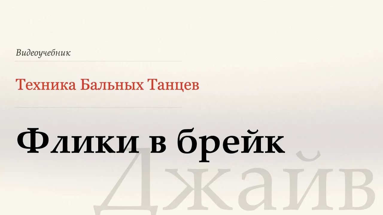 В этом видео описана техника исполнения фигуры Флики в брэйк в танце Джайв: Работа стоп Работа бедер Работа корпуса Позиция в паре Построение по залу Варианты исполнения фигуры Все названия и варианты исполнения взяты из следующих источников: WDSF Latin Technique Book Walter Laird The Laird Technique of Latin Dancing ISTD Latin American Technique Идея и реализация - Анастасия Соина Спасибо за помощь в съемках Денису Галанину По вопросам и предложениям пишите на почту канала TBTvideobook@gmail.com