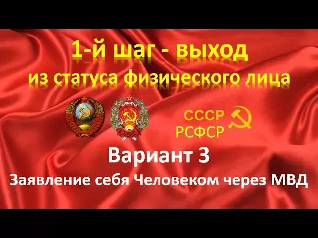 Заявление себя Человеком с гражданством СССР, Сувереном, находящимся в живых через МВД РФ https://youtu.be/4XsvAHuqGiM Подробнее https://vsrsfsr.jimdofree.com/человек/заявление-себя-человеком/ Обновленный пакет 18.03.2020 документов https://drive.google.com/open?id=1XulYBvPHdbCwqRL91wXyFlqvDwIikL9F Ссылка на канал https://tinyurl.com/YouTube-Sovet34-USSR БЛАГО дарим за БлагоТворительную поддержку канала! по ссылке https://yoomoney.ru/to/410015691520438 © 2020 Copyright by USSR. All rights reserved.