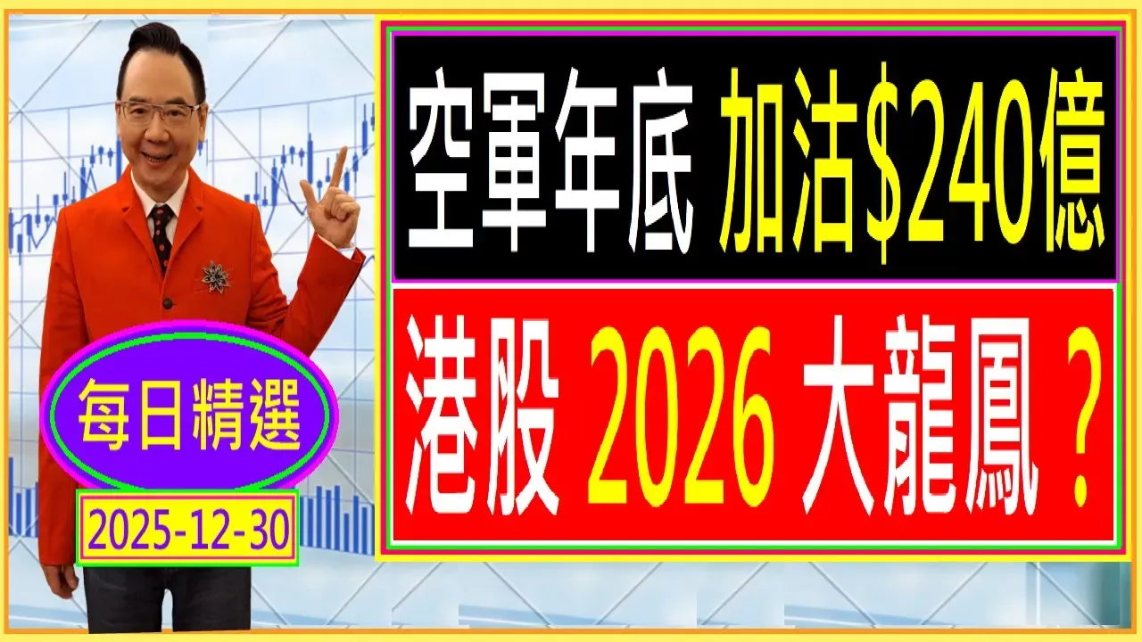 空軍年底加沽$240億 ---- 港股 2026大龍鳳? 每日精選:2025-12-30 譚紹興:投資學堂 Facebook: www.facebook.com/tamsiuhing