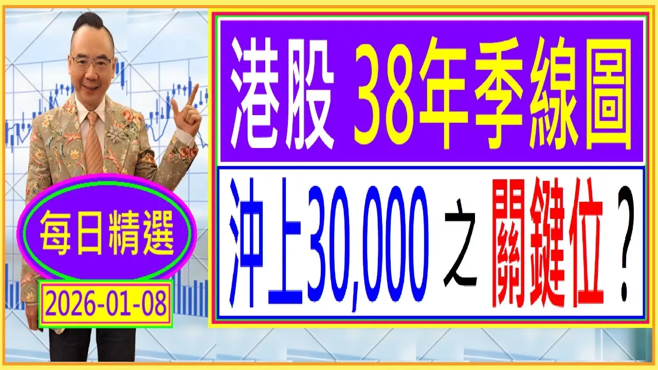 港股38年季線圖 --- 沖上30,000之關鍵位? 每日精選:2026-01-08 譚紹興:投資學堂 Facebook: www.facebook.com/tamsiuhing