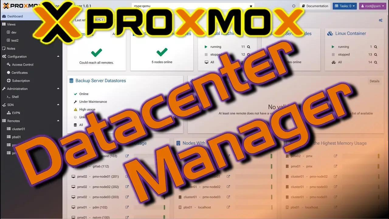 M57 8-in-1 Подставка для ноутбука (Amazon): https://tr.ee/iwV4Ae Proxmox Datacenter Manager — это центральный интерфейс для управления кластером, где можно настраивать виртуальные машины, хранилища, сети и права пользователей. Всё управление инфраструктурой — в одном месте. ++++++++++++++++++++++++++++++++++++++++++ Буду очень благодарен за поддержку в виде чашечки ☕️: https://buymeacoffee.com/romnero ++++++++++++++++++++++++++++++++++++++++++ По предложениям пишите на: infotube@romnero.de Matrix: @romnero:matrix.romnero.de ++++++++++++++++++++++++++++++++++++++++++ 00:00 | Intro 01:11 | Подготовка к установке Datacenter Manager. Создание виртуальной машины 04:18 | Установка Datacenter Manager 05:29 | Первые шаги в Datacenter Manager 06:26 | Добавление Proxmox Host в Datacenter Manager 07:27 | Api Error. Error creating token. Token already exists 08:18 | Обзор меню и функций Datacenter Manager 10:23 | Создание видов — свой dashboard 11:28 | Меню заметок и конфигурация 11:50 | Управление доступом. Сертификаты. Подписка 12:18 | Меню администрирования. Обновление Datacenter Manager 13:18 | Добавление второго Proxmox сервера 13:48 | Центральное обновление серверов Proxmox через Datacenter Manager. Правила фаервола 14:33 | Миграция виртуальных машин и LXC между серверами Proxmox 17:49 | Ошибка миграции. Non migratable snapshot exists 18:50 | Добавление Proxmox Cluster в Datacenter Manager 20:04 | Миграция VM и LXC между сервером Proxmox и кластером 21:10 | Добавление Proxmox Backup сервера в Datacenter Manager 22:17 | Обзор после добавления серверов Proxmox, кластера и бэкап-сервера