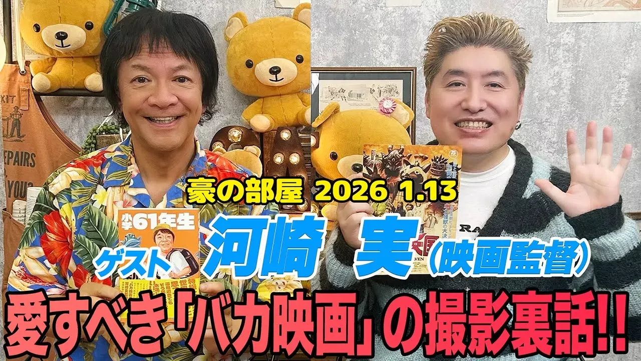 毎週火曜20時〜22時 生配信のご視聴はこちらから↓ https://www.showroom-live.com/r/nekojita 毎週SHOWROOMにて生配信中の『豪の部屋』 。 プロインタビュアー吉田豪が気になるゲストをお招きし、お部屋でくつろいでいるようなリラックスモードで普段聞けないような話を伺う濃厚な2時間。 何故だか分からないけどゲストのことが好きになってしまう・・・!そんな番組です。 アーカイブ動画 <2026年1月13日配信分> 出演:吉田豪、河崎実 ※生配信のアーカイブのため映像が乱れる箇所がある場合がございます。予めご了承ください。