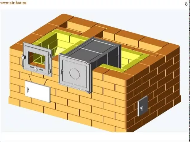 Теплоотдача печи составляет 4600 Вт при двухразовой топке, при этом печь способна отопить жилое помещение размером до 45 м2. Проект печи тут - https://air-hot.ru/index.php/pechiikaminy/otopitelnovarochnyepechi/104-2kp-dsh