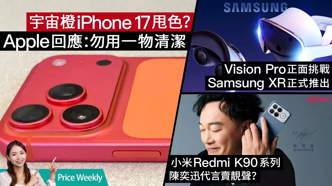 Samsung 正式發表 Galaxy XR,以 Android XR 系統及 AI 功能挑戰 Apple Vision Pro!今集 PriceWeekly 帶你深入分析這款 MR 頭戴裝置的規格與優勢。同時,iPhone 17 Pro「宇宙橙」新色驚傳變色災情,而萬眾期待的 iPhone Fold 亦可能再度延期?手機界方面,OPPO、realme、Redmi 本週連環發表旗艦新作,分別與 Hasselblad、RICOH、Bose 聯乘,更有陳奕迅加持!另外,家電品牌 Dreame 突襲 DJI,推出規格更強的穿戴相機?最後更有歐盟 USB-C 新法規的最新消息! 00:00 影片開始 00:15 Samsung Galaxy XR 登場:Android XR 系統配 AI 功能挑戰 Vision Pro 03:03 iPhone 17 Pro 變色災情:「宇宙橙」機身驚現粉紅色? 04:33 iPhone Fold 再度延期:傳聞或推遲至 2027 年推出 06:16 OPPO Find X9 系列發布:Hasselblad 加持再爭「演唱會神器」 07:28 realme GT8 系列發布:聯乘 RICOH 植入 GR 街拍靈魂 09:10 Redmi K90 系列發布:Bose 調音 2.1 聲道、陳奕迅代言 10:45 DJI 殺手登場?:Dreame Leaptic Cube 規格硬撼 Osmo Nano 12:36 歐盟 USB-C 新法規:規管範圍擴展至充電器火牛 ------------------------ 監製:Aaron 主持:kiki https://www.facebook.com/unsupportedbrowser 攝影:Dylan 剪接:Dylan 平面:CK ------------------------- Social Network: FB Page: https://www.facebook.com/unsupportedbrowser IG: https://www.facebook.com/unsupportedbrowser Price網站: https://www.price.com.hk/ Price網購: https://www.price.com.hk/ec-mainpage.php