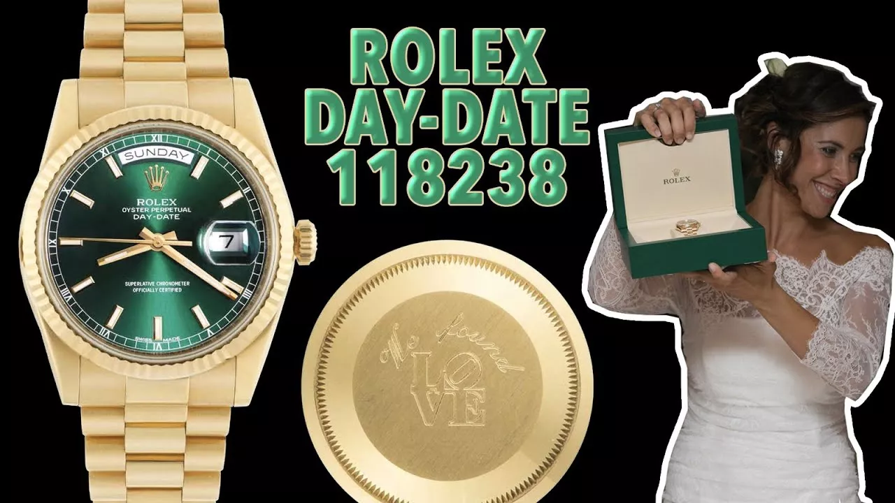 Instagram: https://www.facebook.com/unsupportedbrowser In this video I show you a very precious watch to me: the watch that my husband Daniele gave me as gift during our wedding party, the 18K yellow gold Rolex Day-Date ref. 118238 with green dial. Absolutely my favorite watch ever and, from my point of view, one of the nicest "President's watches" recently produced. For more videos of luxury watches subscribe to my channel at: https://www.youtube.com/giorgiamondani%E2%80%8B%E2%80%8B Would you like to know more about the Rolex Day-Date 118238? You can find the thematic book by Mondani Editore at: https://mondanibooks.com/bookstore/%E2%80%8B%E2%80%8B%E2%80%8B Follow my Instagram profile at: https://www.facebook.com/unsupportedbrowser