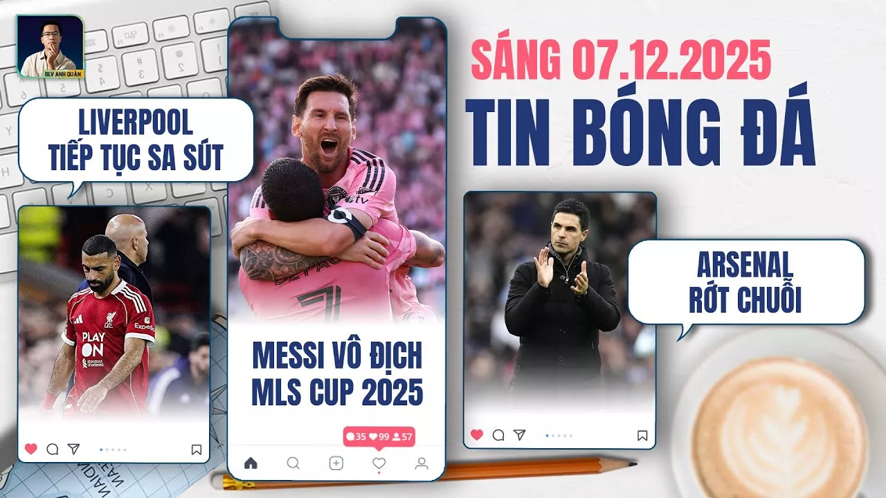 TIN BÓNG ĐÁ 07/12: MESSI VÔ ĐỊCH MLS CUP 2025, ARSENAL RỚT CHUỖI, LIVERPOOL TIẾP TỤC SA SÚT Bóng đá thế giới tiếp tục sôi động với những diễn biến đầy kịch tính trong 24 giờ qua. Tâm điểm là việc Lionel Messi dẫn dắt Inter Miami thắng Vancouver Whitecaps ba một để giành MLS Cup 2025. Aston Villa chấm dứt chuỗi bất bại dài của Arsenal khi Emiliano Buendia ghi bàn quyết định ở giây cuối, giúp đội nhà thắng hai một và chen chân vào nhóm đua vô địch. Real Madrid đang khởi sắc và Mbappe chính là trung tâm. Anh ghi thêm hai bàn vào lưới Athletic Club và được so sánh với Cristiano Ronaldo. Và đây là bản tin bóng đá sáng ngày 7 tháng 12 trên kênh BLV Anh Quân News. BREAKING NEWS Lionel Messi dẫn dắt Inter Miami vô địch Lionel Messi dẫn dắt Inter Miani vô địch MLS Cup 2025 Chelsea gây thất vọng trong trận hòa mờ nhạt Chelsea tiếp tục gây thấy vọng khi để đối thủ gỡ hòa phút cuối Barcelona vươn lên dẫn đầu La Liga Barcelona thắng Betis năm ba và vươn lên dẫn đầu LaLiga Bóng đá thế giới 24 giờ qua nổi bật với hàng loạt trận đấu ở các giải đấu châu Âu giữa tuần. SUBSCRIBE KÊNH: https://www.youtube.com/user/viendongquan?sub_confirmation=1 Liên hệ công việc/hợp tác: blvanhquan@gmail.com Facebook: https://www.facebook.com/unsupportedbrowser Tiktok: https://www.tiktok.com/@blv_anhquan ---------------------------------------------------------------- © Bản quyền thuộc về BLV Anh Quân © Do not Reup.