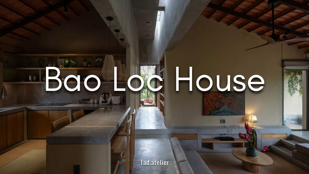 #housedesign #tinyhouse #tropicalhouse #architecture Small, Calm, and Purposeful: A House Shaped by Its Landscape Architects: Tad.atelier Area: 96 m² Year: 2024 Lead Architects: Vu Tien An Lead Team: Vu Tien An, Nguyen Nhat Hao Design Team: Dang Quang Luan, Nguyen Doan Kim Hau City: Lam Dong Country: Vietnam Bao Loc House is a compact 96-square-meter residence designed by Tad.atelier in Lam Dong, Vietnam, created for a young couple seeking a flexible live–work environment in a rural setting. The house emphasizes adaptability, with open and multifunctional spaces that respond to daily activities rather than fixed room definitions. Through strong indoor–outdoor connections, natural ventilation, and the use of locally familiar materials, the design balances contemporary living with environmental awareness, offering a calm and grounded response to its agricultural surroundings.