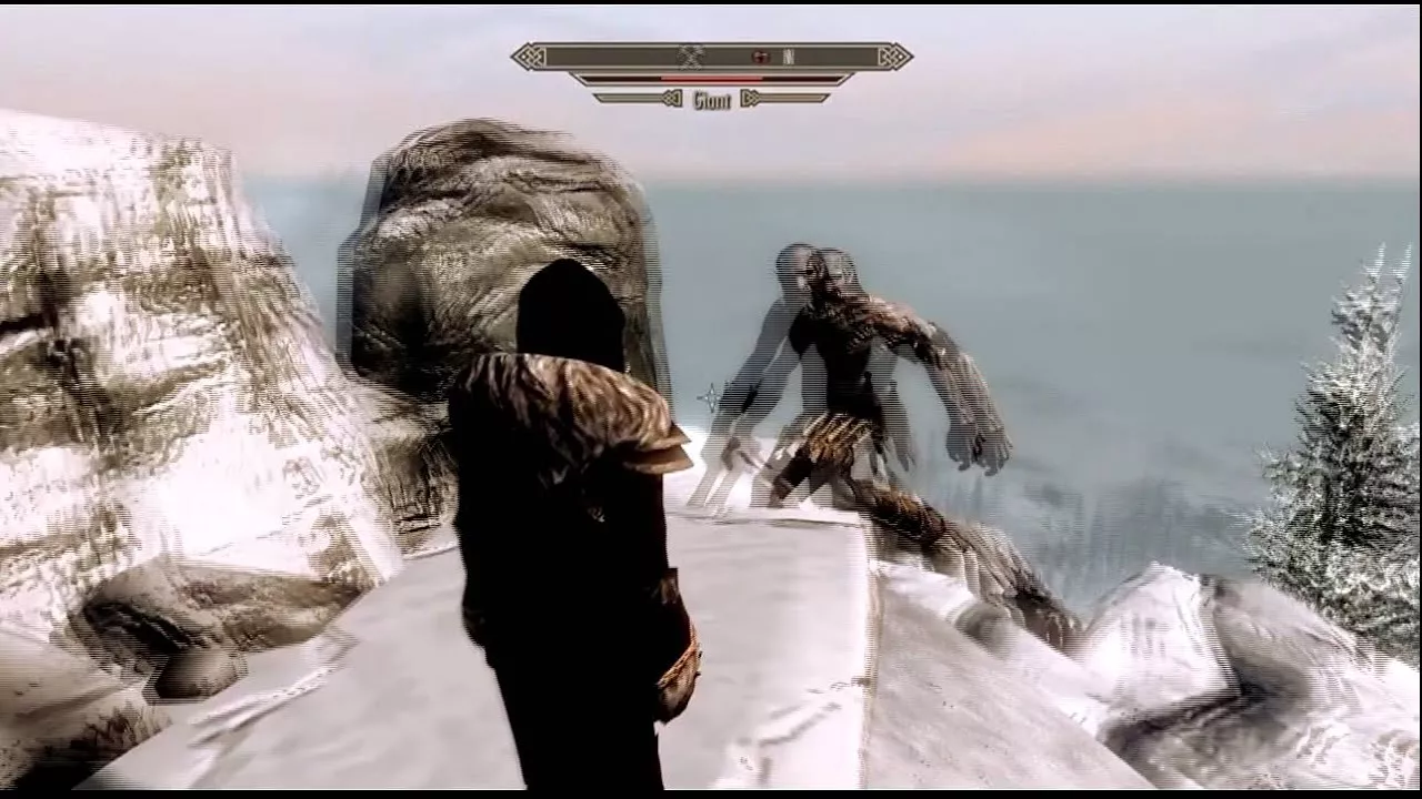 Took me a solid 10-20 minutes getting this giant to follow me to the top of a mountain (Location of the Mehrunes Dagon Shrine) just so i could shout him off the top :D Enjoy