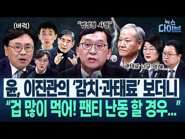 윤, 이진관의 ‘감치·과태료’ 보더니 “겁 많이 먹어! 팬티 난동 할 경우...” 책임피디: 김도성 진행: 고현준 기술: 김승하 타이틀 / C.G: 김수경 클립 썸네일: 온수애 조정은 전가영 취재·구성: 이승준 연출: 박승연 박정현 조성욱(yeoni@hani.co.kr) ■ 뉴스 다이브를 시청해 주셔서 감사합니다! 마켓하니로 유용한 쇼핑 하시고 한겨레에도 힘을 실어주시면 감사하겠습니다! https://markethani.com/ 한겨레신문 구독 신청 https://subs.hani.co.kr/main.do 한겨레신문 단기(3,6개월)구독권 신청 https://smartstore.naver.com/hankyoreh/products/11676802059 ▶ 한겨레 누리집: https://www.hani.co.kr/ ▶ 한겨레TV 페이스북: https://www.facebook.com/unsupportedbrowser