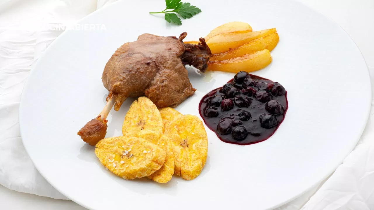Karlos Arguiñano prepara un espectacular confit de pato con plátano frito y salsa de arándanos 🦆🍒, una receta elegante y muy sencilla de hacer en casa, ideal para comidas especiales o celebraciones. Un segundo plato jugoso, vistoso y lleno de contrastes ✨, perfecto para el invierno y para sorprender sin complicarse en la cocina. Cocina casera con un toque gourmet, al estilo de Karlos Arguiñano. 📝 INGREDIENTES 4 confits de pato 1 plátano macho 2 peras 1 limón 1 cucharada de miel Aceite de oliva virgen extra Sal Perejil 🔗 Puedes encontrar la receta completa de Confit de pato con plátano frito y salsa de arándanos aquí 👇 https://www.hogarmania.com/cocina/recetas/carnes/confit-pato-salsa-arandanos-34705.html?utm_perfil=CocinaAbierta ==================================== Puedes darnos tu apoyo con un like 👍 y compartiendo este vídeo. ¡No olvides suscribirte y hacer clic en el símbolo de la campanita 🔔 para no perderte ninguna receta! ==================================== ¡Síguenos para no perderte nada! ◾ Whatsapp https://www.whatsapp.com/channel/0029VaCZmPT5EjxyuRqXv10Q ◾ Instagram https://www.facebook.com/unsupportedbrowser ◾ Facebook https://www.facebook.com/unsupportedbrowser ◾ TikTok https://www.tiktok.com/@cocinaabierta ◾ X https://x.com/cocinaabiertatv ◾ Pinterest https://es.pinterest.com/cocinaabiert... ◾ Telegram https://t.me/cocinaabierta ◾ Bluesky https://bsky.app/profile/cocinaabierta.bsky.social