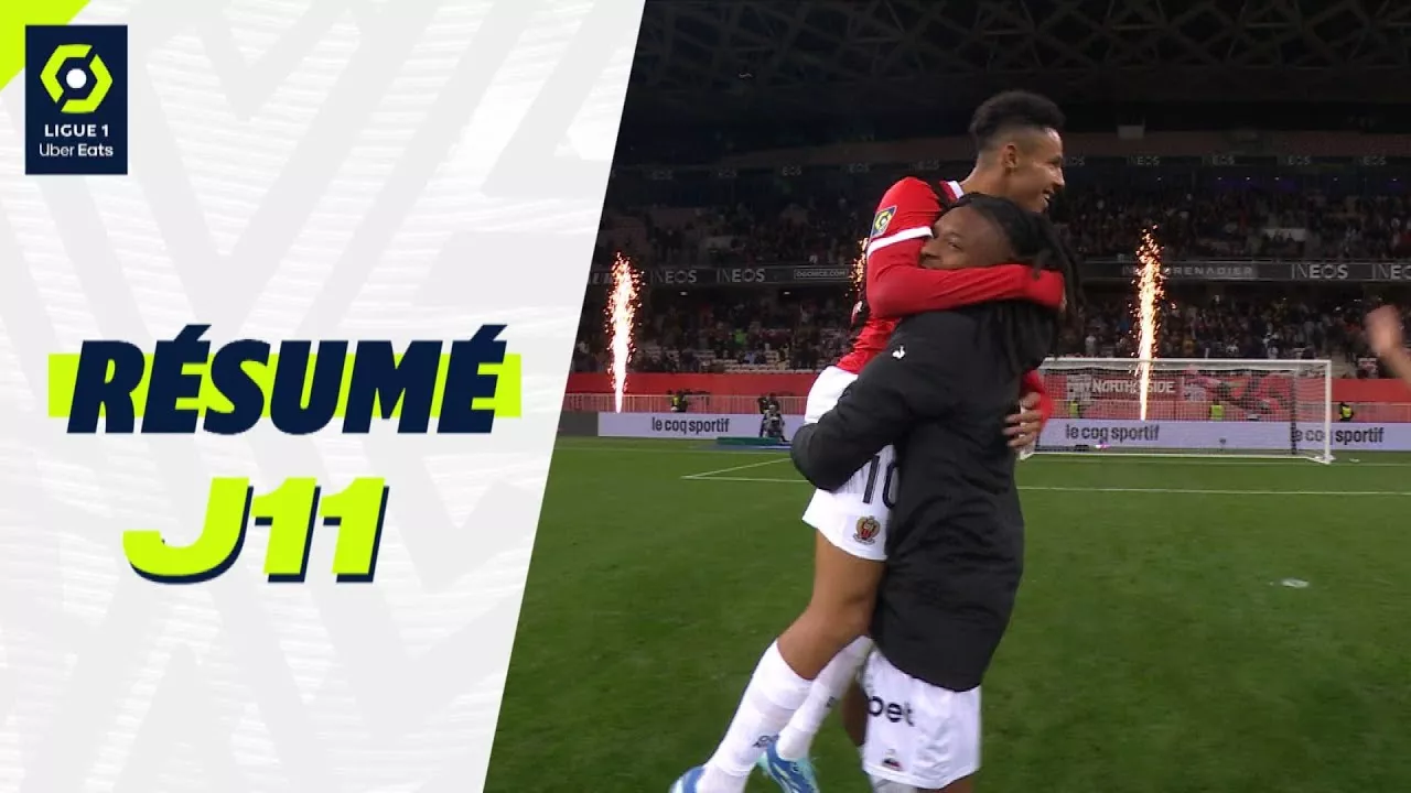 Revivez les meilleurs moments de la 11ème journée de Ligue 1 Uber Eats en vidéo. Ligue 1 Uber Eats - Saison 2023/2024 - 11ème journée FC LORIENT - RC LENS (0-0) OLYMPIQUE LYONNAIS - FC METZ (1-1) OLYMPIQUE DE MARSEILLE - LOSC LILLE (0-0) AS MONACO - STADE BRESTOIS 29 (2-0) FC NANTES - STADE DE REIMS (0-1) OGC NICE - STADE RENNAIS FC (2-0) PARIS SAINT-GERMAIN - MONTPELLIER HÉRAULT SC (3-0) RC STRASBOURG ALSACE - CLERMONT FOOT 63 (0-0) TOULOUSE FC - HAVRE AC (1-2) Buteurs : / Ablie JALLOW (77' - FCM) / Skelly ALVERO (84' - OL) / / / Junya ITO (75' - SdR) / / Kangin LEE (10' - PSG) / Warren ZAIRE-EMERY (58' - PSG) / Vitor MACHADO FERREIRA (66' - PSG) / / Thijs-Jacco-Jan DALLINGA (50' - TFC) / Mohamed BAYO (83' - HAC) / Mohamed BAYO (90' +5 - HAC) Cartons rouges/exclusions : ///////Marvin SENAYA (76' - RC STRASBOURG ALSACE) / Suivez nous sur Youtube : https://www.youtube.com/user/ligue1fr?sub_confirmation=1 Suivez nous sur Instagram : https://www.facebook.com/unsupportedbrowser Suivez nous sur Twitter : https://twitter.com/Ligue1UberEats Suivez nous sur Facebook : https://www.facebook.com/unsupportedbrowser Suivez nous sur Ligue1.fr : https://ligue1.com/ Suivez nous sur Twitch : https://www.twitch.tv/ligue1ubereats Suivez nous sur Tiktok : https://www.tiktok.com/@ligue1ubereats?lang=fr Suivez-nous sur Discord : https://discord.com/invite/ligue1ubereats