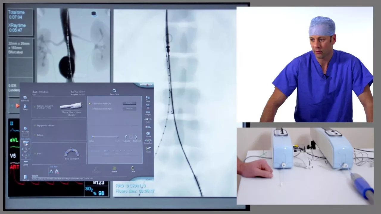 Medtronic Endurant II stent graft deployment for a 5.5cm Abdominal Aortic Aneurysm. Performed by Dr. Rob Williams on a 3D systems endovascular simulator