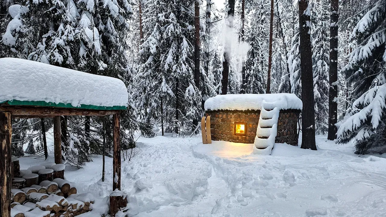 Hi! I reached my log cabin. It had been a long journey, and there had been a lot of snow this month! There was over 50 cm of snow on the roof! I tidied up my shelter and had a wonderful 24 hours alone in this quiet, snowy land! Thank you for joining me on this incredible wilderness journey. Your support means everything as I continue sharing these authentic outdoor adventures and traditional building skills. I wish you all pleasant views!