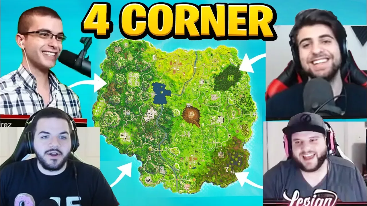Today we attempt the OG Fortnite FOUR CORNER Challenge! Me Nick Eh 30 Courage and Legiqn, four Fortnite OG's attempt something impossible: Land at the four corners of the map and get a win with ALL FOUR of us skybasing! We want to meet our skybases in the middle of the map, but will we suceed? Enjoy!! 🌟 Socials 🌟 📺 Twitch: https://www.twitch.tv/sypherpk 🐥 Twitter: http://www.twitter.com/sypherpk 📷 Instagram: https://www.facebook.com/unsupportedbrowser 💌 Discord: https://discord.com/invite/sypherpk 📚 Facebook: https://www.facebook.com/unsupportedbrowser 🎥 Channel Directed, Thumbnail by: JackZenn: https://twitter.com/JackMelaschenko 🎥 Edit by Jarrett Hey everyone it’s SypherPK, and Welcome back to another fortnite battle royale vid! I try to keep these vids as clean and family friendly as possible! Hope you enjoy!