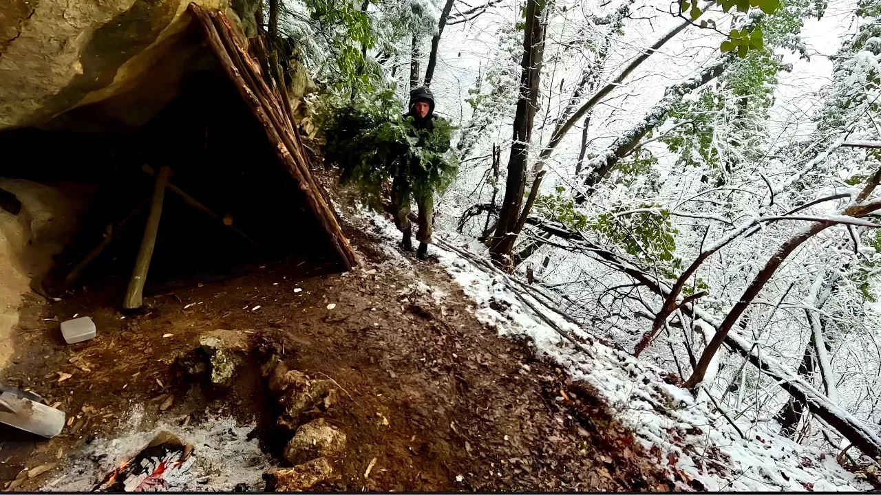 Hello everyone! In this video you will see how my dog and I spent 3 days of winter camping in the rain, cold and snow. I will also show you how I turned a natural shelter under a rock into a comfortable and efficient bushcraft shelter with a fireplace that warmed me during the long winter night. I made a military-style bed from a tent wing that I placed on a simple wooden tripod. The plant I eat raw at the beginning of the video is wild garlic,and the yellow flower I pick and later make tea from is the primrose plant. The temperature dropped to -5 degrees Celsius at night. This was another unforgettable adventure that I am sharing with you. Thanks for watching, I hope you like it! 🔔 Subscribe: https://www.youtube.com/channel/UCh4NS4VQ8lWiDINi-HMkvaw My other profiles: https://www.facebook.com/unsupportedbrowser https://www.paypal.com/paypalme/luxonbushcraft INSTAGRAM: Luxon Bushcraft My videos cover log cabins, shelters, winter camping, primitive technology, bushcraft, wilderness survival, cave survival, outdoor skills, outdoor cooking, DIY, fishing, and bushcraft equipment such as knives, saws and axes.