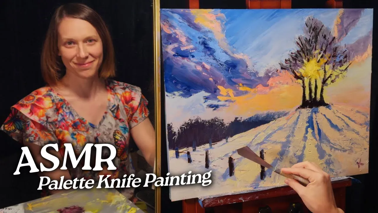 Painting for auction on eBay here: https://ebay.us/m/X7sA47 Relaxing Palette Knife Painting ASMR: Watch as I create a vibrant painting of a snowy hill with trees and the sun shining through using oil paint, palette knife, and a little bit of brushing. Timestamps are below if you want to skip to your favorite part! Along the way I share my process in soft spoken commentary. Enjoy the painting session with headphones to hear the drawing sounds and palette knife scraping, scratching, and mixing on board. Sometimes I just want to paint something simple and happy and beautiful. This snow scene is one of those. I used a base layer of oil paint and finished the with glowing highlights and details using oil and cold wax medium. It's a combination I really enjoy for texture and luminosity. Snow scenes are some of my favorites to paint because of all the subtle color shifts. It makes them perfect for palette knife painting. Reference Photo: https://pixabay.com/photos/trees-branches-sunset-winter-snow-6865347/ -- If you'd like to help support the channel, you make a donation or buy a painting on my ko-fi page: https://ko-fi.com/kellesabelle -- For those unfamiliar, ASMR stands for Autonomous Sensory Meridian Response. It’s a calming, sometimes tingling sensation people may experience in response to gentle stimuli, like soft sounds, whispering, or repetitive actions. Whether or not you experience ASMR in any specific way, these types of videos provide an opportunity to unwind, relieve stress, and experience a calming presence. Some people also enjoy them for tinnitus relief. I create no talking and soft spoken ASMR art videos with the goal of enjoyable sound quality and an unintentional ASMR feel. I want these ASMR videos to offer a comfortable, relaxing, and soothing experience, with a genuine, natural style. In my earlier recordings, I mostly set up the camera and audio recording gear, forget about them, and get into the drawing and painting. Now I sometimes speak a little, sharing my thought process along the way. Check the playlist section if you prefer one style over the other. Each video I make has subtle variations that happen as a natural part of this process. In this collection so far, there are different styles of brushwork, palette knife techniques, foam brush painting, charcoal drawings, each with different amounts of background white noise, hum of traffic, and even some with real rain sounds. -- Recording Info: Audio - Zoom H6e with Rode NT5 Microphones - Binaural/Stereo Sound Video - iPhone 15 Pro -- — Timestamps 00:00:00 - Hello and Welcome 00:00:19 - Reference Photo 00:01:39 - Mixing a Liquid Base Layer 00:04:13 - Brushing Liquid Layer 00:07:35 - Brush Washing 00:13:33 - Brush Cleaning 00:15:18 - Palette Knife Painting Starts 00:49:44 - Day 2 - Wax Painting with Palette Knife