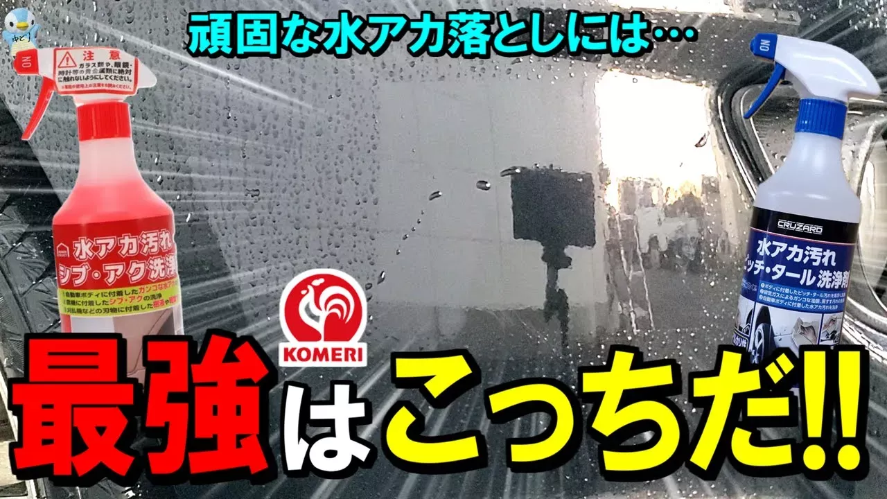 今回は、車に付いた頑固な水アカ、ウロコ イオンデポジットやウォータースポットなどと言われますが この水アカ汚れに使うんだったら、コメリの酸性、アルカリクリーナー どっちの方がいいのか?優れているのか? っていうのを検証、比較をしてみました! まあでもどちらも持っておくのに越したことないですね^^; 【お知らせ】 この動画と直接関係はしませんが 以前紹介させていただいた格安電動式フォームガンが ここまで安くなっていましたので共有させていただきます。 →https://www.amazon.co.jp/gp/product/B0CMYR2Y5R?ie=UTF8&language=ja_JP なお、上記の紹介動画はこちらから確認できます →https://www.youtube.com/watch?v=KYRtPZZXy-U すでにそれぞれでの検証動画も投稿してありますので 気になる方は合わせてご覧ください。 酸性クリーナーの動画 →https://www.youtube.com/watch?v=5tZ1Xkn68XA アルカリクリーナーの動画 →https://www.youtube.com/watch?v=w_Z4k8l33YE シュアラスターゼロクリームの動画 →https://www.youtube.com/watch?v=StpjBQQ8RbM 【商品ページ】 酸性 500ml→https://www.komeri.com/shop/g/g2116626/ 5L→https://www.komeri.com/shop/g/g958899/ アルカリ 500ml→https://www.komeri.com/shop/g/g2147659/?reco=8 5L→https://www.komeri.com/shop/g/g2147660/ その他ドライクロスや強撥水シャンプーなど 多数の同社カー用検証しています まとめた再生リストはこちらから 【コメリセレクト・クルザード】 →https://www.youtube.com/watch?v=ghXvdygbLhc&list=PL3L0YbzEJZcivbl3AWjMO25tr7WOgWpWw 【ホームセンター別PBカー用品検証リスト】 カインズ →https://www.youtube.com/watch?v=xzil8z2epJU&list=PL3L0YbzEJZcha7eXA2l1777Gx9xvKGXU3 DCMブランド →https://www.youtube.com/watch?v=aCvyUu0_pe0&list=PL3L0YbzEJZcgL_Aye2qrrWDbB-JMCsNw2 コーナン →https://www.youtube.com/watch?v=BIZqIlxpjjw&list=PL3L0YbzEJZcgEgVVBICG7ZleYZnRVEPFD 【再生リスト】 ヘッドライト磨き →https://www.youtube.com/watch?v=caQEou0i1y4&list=PL3L0YbzEJZchCnR8cSzGK3TMWZ5guCu0f タイヤ・ホイール系 →https://www.youtube.com/watch?v=PEBvCGiJm_A&list=PL3L0YbzEJZciKzBqqyyYE2oqW1fUlC5cI ガラス撥水 →https://www.youtube.com/watch?v=VAaXiImiuCI&list=PL3L0YbzEJZciyUXnD691gNhxTE_E76PDD ボディコーティング →https://www.youtube.com/watch?v=1TaElZwuOkE&list=PL3L0YbzEJZcg_aE49ZTLRf0CiX_jeT4FN 車系総合 →https://www.youtube.com/watch?v=caQEou0i1y4&list=PL3L0YbzEJZcgYQhqt6b6GkHM4H33c6mtB Twitter(ツイッター) →https://bit.ly/35SD5i3 (更新情報やお知らせなど) instagram(インスタグラム) →https://www.facebook.com/unsupportedbrowser (どちらも気軽にフォローしてください。) ※この動画は音が出せない状況でもわかりやすいオリジナル字幕付きです。 ※画質を720p以上にすると60fpsのなめらかな動きでご覧いただけます。 ※BGMは全てフリー素材のものを使用しております。
