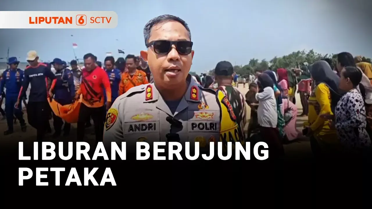Petaka maut yang menewaskan wisatawan terjadi di sejumlah daerah di Tuban, Jawa Timur. Seorang bocah tewas terseret ombak saat bermain air di Pantai Tambakboyo. Update video lainnya dari SCTV dan Liputan 6, klik: https://www.vidio.com/@sctv Simak konten Liputan 6 lainnya di https://www.youtube.com/channel/UC1QpnGo11epfexw1bIiTHTg/videos Perbaharui informasi dari sejumlah daerah di Indonesia, klik: https://www.youtube.com/@Liputan6Daerah Liputan 6 SCTV adalah program berita televisi nasional yang berada di bawah naungan Elang Mahkota Teknologi (Emtek) Group. Liputan 6 SCTV juga menyajikan informasi dalam bentuk live report dan breaking news. Tayang siaran langsung, setiap hari di saluran tv SCTV pada program Liputan 6 Pagi, Liputan 6 Siang, Liputan 6 Petang Terkini, dan Liputan 6 Malam. Ikuti media sosial Liputan 6 SCTV untuk mendapatkan informasi Aktual, Tajam, Terpercaya. Liputan 6 SCTV Official Instagram: https://www.facebook.com/unsupportedbrowser Liputan 6 SCTV Official Tiktok: https://www.tiktok.com/@liputan6.sctv Liputan 6 SCTV Official Facebook : https://www.facebook.com/unsupportedbrowser SCTV Facebook Fanpage: https://www.facebook.com/unsupportedbrowser SCTV Official Twitter: https://twitter.com/SCTV