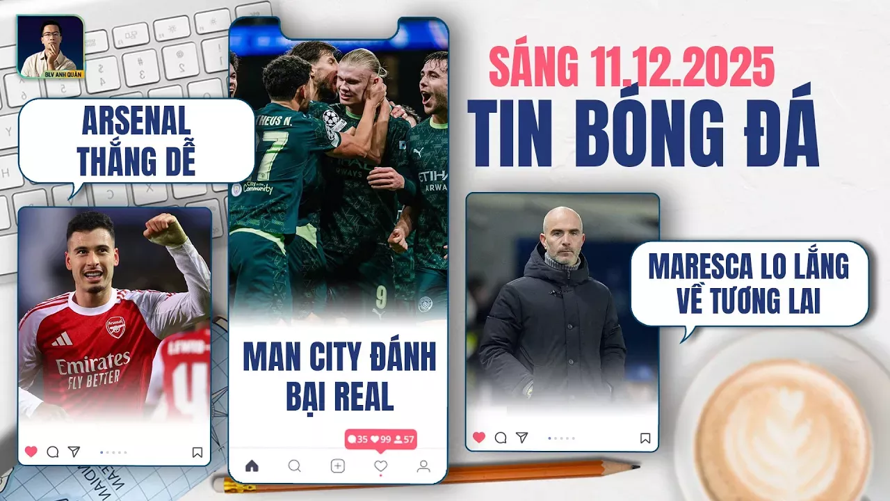 TIN BÓNG ĐÁ 11/12: REAL MADRID ĐỂ THUA MAN CITY, ARSENAL THẮNG DỄ, MARESCA LO LẮNG VỀ TƯƠNG LAI Trong 24 giờ qua, thế giới bóng đá dậy sóng với hàng loạt diễn biến hấp dẫn. Real Madrid tiếp tục rơi tự do khi để thua trước Manchester City ngay tại Bernabeu, khiến tương lai của huấn luyện viên Xabi Alonso gần như chấm dứt. Arsenal có một đêm thi đấu hoàn hảo khi dễ dàng hạ Club Brugge với cú đúp của Noni Madueke và sự thăng hoa toàn diện. Enzo Maresca tỏ ra lo lắng khi Chelsea rơi vào chuỗi bốn trận không thắng, đẩy đội vào áp lực lớn trước giai đoạn cuối năm. Và đây là bản tin bóng đá sáng ngày 11 tháng 12 trên kênh BLV Anh Quân News. SUBSCRIBE KÊNH: https://www.youtube.com/user/viendongquan?sub_confirmation=1 Liên hệ công việc/hợp tác: blvanhquan@gmail.com Facebook: https://www.facebook.com/unsupportedbrowser Tiktok: https://www.tiktok.com/@blv_anhquan ---------------------------------------------------------------- © Bản quyền thuộc về BLV Anh Quân © Do not Reup.