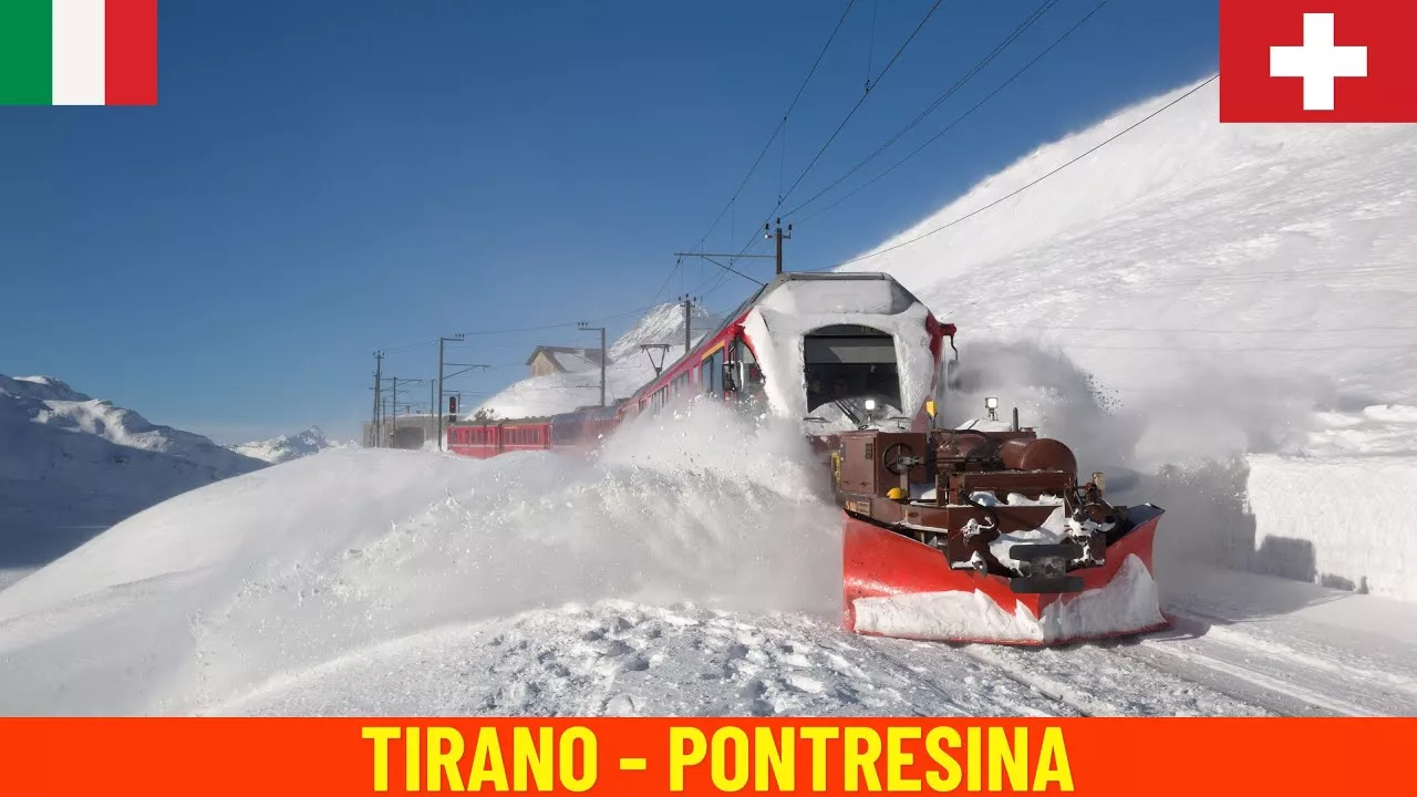 In this video you can enjoy the cab ride - train driver's view from Tirano in Italy (441 m) to Pontresina in Switzerland (1,773 m) along the Bernina Railway line. You can enjoy this video in the resolution of 4K/60 frames per second. The Bernina railway line is a single-track 1,000 mm (3 ft 3+3⁄8 in) metre gauge railway line forming part of the Rhaetian Railway (RhB). It links the spa resort of St. Moritz, in the canton of Graubünden, Switzerland, with the town of Tirano, in the Province of Sondrio, Italy, via the Bernina Pass. St Moritz is the terminus of both the Albula line and the Bernina line. As the two lines are powered by different electrification systems, they meet at the same station but operate on separate lines from separate platforms. Reaching a height of 2,253 metres (7,392 ft) above sea level, it is the third-highest railway crossing in Europe and the third-highest railway in Switzerland. It also ranks as the highest adhesion railway on the continent, and – with inclines of up to 7% – as one of the steepest adhesion railways in the world. The elevation difference on the section between the Bernina Pass and Tirano is 1,824 m (5,984 ft), which makes it the open-air railway with the greatest height difference. On 7 July 2008, the Bernina Railway and the Albula Railway, which also forms part of the RhB, were recorded in the list of UNESCO World Heritage Sites, under the name Rhaetian Railway in the Albula / Bernina Landscapes. The whole site is a cross-border joint Swiss-Italian heritage area. The trip on the Bernina Express through this World Heritage Site is a four-hour railway journey across 196 bridges, through 55 tunnels and across the Bernina Pass at 2,253 metres above the sea. Sit Back, Relax, and Enjoy watching this full-length scenic rail trip video in 4K quality. This Relaxing Video is best watched on a 4K big-screen TV sitting on a cosy sofa or armchair. All my videos are copyrighted. Contact me for more information. Please note that the speed data is GPS-based and can be very inaccurate. It might indicate a different speed than the actual speed. 🛑 Website: https://www.railrelaxation.com/ 🛑 Please Subscribe ➤ https://www.youtube.com/c/RailRelaxation?sub_confirmation=1 If you want to help make this channel even better, please consider. 🛑 https://www.paypal.com/donate/?hosted_button_id=NLDVCNXRBVRC8 🛑 Love trains and trainspotting? Check out my other channel dedicated to trainspotting adventures! Here is the link: https://www.youtube.com/@railtrainspotting Route Info: ◎ Drive Date: January 2024 ◎ Start: Tirano Italy ◎ End: Pontresina Switzerland ◎ Train: RhB ABe 8/12 (STADLER ALLEGRA) ◎ Drive Time: 01:52:54 ◎ Route: https://www.railrelaxation.com/map 0:00 Preview 02:24 TIRANO 09:29 CAMPOCOLOGNO 13:10 CAMPASCIO 15:07 BRUSIO SPIRAL VIADUCT 17:57 BRUSIO 25:06 MIRALAGO 29:44 LE PRESE 36:54 LI CURT 41:09 POSCHIAVO 52:25 CADERA 1:02:59 CAVAGLIA 1:14:33 ALP GRÜM 1:19:02 LAGO BIANCO LAKE 1:21:51 OSPIZIO BERNINA 1:30:27 BERNINA LAGALB 1:33:31 BERNINA DIAVOLEZZA 1:36:02 BERNINA SUOT 1:42:32 MORTERATSCH 1:48:24 SUROVAS 1:52:07 PONTRESINA Thanks for watching and have a nice day! #CabRide#RailRelaxation#BerninaRailway#RhB