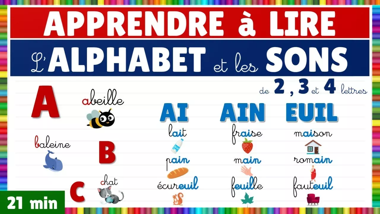 Entraînez vous à lire les lettres de l'alphabet et des mots contenant des sons formés à l'aide de graphèmes de 2, 3 et 4 lettres en français. Cette vidéo contient toutes les graphèmes de 4 lettres et présente 6 mots à lire pour chaque son. Un exercice idéal les personnes qui débutent la lecture en français. Cette vidéo s'adresse aux personnes apprenant le français. #EME #lecture #sons #alphabet Notre page TIPEEE pour nous soutenir : https://fr.tipeee.com/eveiller-mon-enfant Notre livre "Apprendre à lire avant 3 ans ... et bien plus encore" : Notre livre au format ebook : https://amzn.to/2HHXRbc Notre livre au format papier : https://amzn.to/2HAVCqi Abonnez-vous pour recevoir nos dernières vidéos. Le contenu de cette vidéo est en français. 0:00 Intro 0:08 L'alphabet 6:04 Les graphèmes de 2 lettres 14:53 Les graphèmes de 3 lettres 19:09 Les graphèmes de 4 lettres Notre page TIPEEE pour nous soutenir : https://fr.tipeee.com/eveiller-mon-enfant Notre livre "Apprendre à lire avant 3 ans ... et bien plus encore" : Notre livre au format ebook : https://amzn.to/2HHXRbc Notre livre au format papier : https://amzn.to/2HAVCqi Abonnez-vous pour recevoir nos dernières vidéos. Le contenu de cette vidéo est en français.
