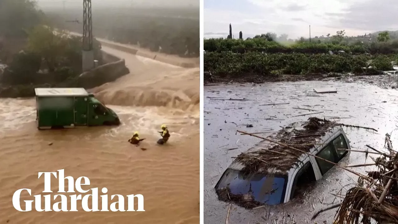 Several people have died, an official said, and at least seven people are missing after torrential rain caused flash floods in southern and eastern Spain, shutting roads and high-speed train connections. Subscribe to Guardian News on YouTube ► https://www.youtube.com/user/guardianwires?sub_confirmation=1 Raging flood waters swept through the town of Letur in the east, pushing cars through the streets. State weather agency AEMET declared a red alert in the Valencia region and the second-highest level of alert in parts of Andalusia. Dead bodies found after torrential rain brings flash flooding to Spain ► https://www.theguardian.com/europe/world/2024/oct/29/four-missing-after-torrential-rain-brings-flash-flooding-to-spain The Guardian publishes independent journalism, made possible by supporters. Contribute to The Guardian today ► https://support.theguardian.com/eu/contribute?acquisitionData=%7B%22source%22%3A%22SOCIAL%22%2C%22componentType%22%3A%22ACQUISITIONS_OTHER%22%2C%22componentId%22%3A%22Feb_2021_YT_news_channel_video_desc%22%2C%22campaignCode%22%3A%22Feb_2021_YT_news_channel_video_desc%22%7D&INTCMP=Feb_2021_YT_news_channel_video_desc Sign up to the Guardian's free new daily newsletter, First Edition ► http://theguardian.com/first-edition Website ► https://www.theguardian.com Facebook ►https://www.facebook.com/unsupportedbrowser Twitter ► https://twitter.com/guardian Instagram ► https://www.facebook.com/unsupportedbrowser The Guardian on YouTube: The Guardian ► https://www.youtube.com/guardianwires?sub_confirmation=1 Guardian Australia ► https://www.youtube.com/guardianaustralia?sub_confirmation=1 Guardian Football ► https://www.youtube.com/guardianfootball?sub_confirmation=1 Guardian Sport ► https://www.youtube.com/guardiansport?sub_confirmation=1 It's Complicated ► https://www.youtube.com/@ItsComplicated?sub_confirmation=1 Guardian Live ► https://rclcomlink.com/loading?n2024=guardianlivesub