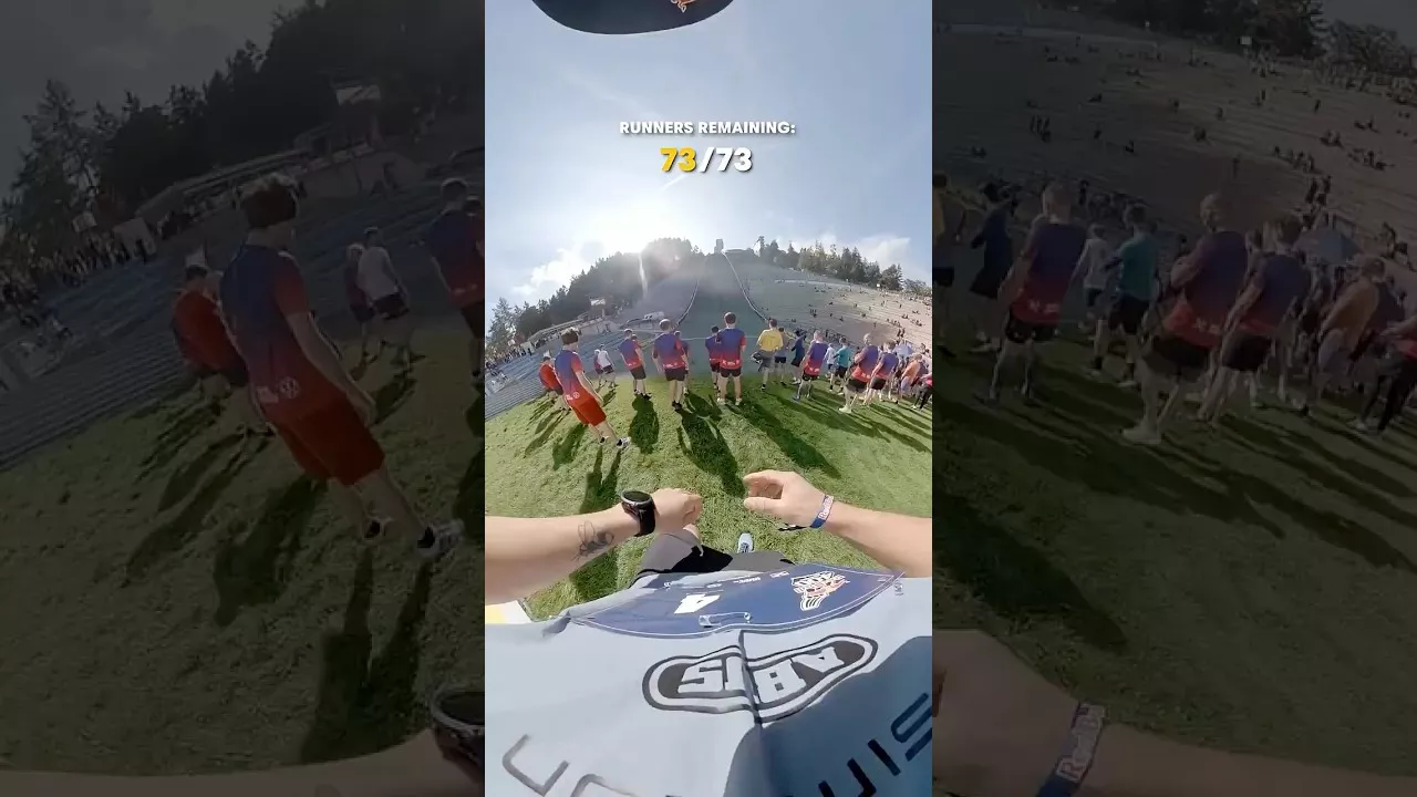 Professional Red Bull adventure racer Michael Strasser tries to overtake all of the participants at Red Bull 400 while running up a ski slope