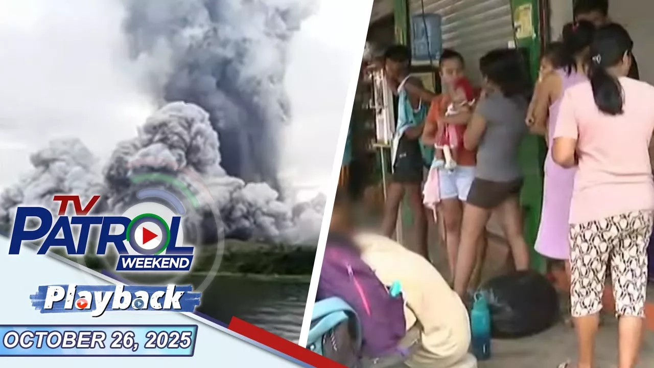 Narito ang mga Balita mula sa TV Patrol ngayong Oktubre 26, 2025. Chapters: 0:00 - Intro 0:46 - Bulkang Taal, sunod-sunod ang pagputok 8:04 - Magnitude 4.9 na lindol, yumanig sa Davao Oriental 8:38 - 47th ASEAN Summit, nagsimula na sa Malaysia 12:42 - Senado, target ang mas mababang 2026 national budget 15:23 - BINI, nakiisa sa Aurora Music Festival sa Davao City 16:03 - Mas mataas na tax-exempt benefits para sa mga manggagawa, pinag-aaralan 17:07 - Oplan Biyaheng Ayos: Undas 2025, inilunsad 21:32 - Kwentong Kababalaghan: Groupie na may kasamang ligaw na kaluluwa 23:29 - PBB Celebrity Collab Edition 2.0, ipinakilala ang bagong housemates 25:35 - Outro May mga ulat mula kina: Adrian Ayalin Zen Hernandez TV Patrol is the flagship newscast of ABS-CBN. Catch the latest and top news and analysis today and every day brought to you by ABS-CBN News in the service of the Filipino. Get access to the latest and breaking news from TV Patrol on TFC Online if you’re watching overseas. Visit us here https://www.iwanttfc.com/ Stay updated by visiting https://news.abs-cbn.com/ For more TV Patrol Playback videos, click the link below: https://www.youtube.com/playlist?list=PLgyY1WylJUmhb897gsKGdgqiJiQVAt9m4 For more TV Patrol videos, click the link below: https://www.youtube.com/playlist?list=PLgyY1WylJUmgL3VvLVxQKSNKxlEYkX9x6 For more TV Patrol Full Episode Replays, click the link below: https://www.youtube.com/playlist?list=PLgyY1WylJUmggcgcassFx3EWry7nZEPW2 For more latest news and analysis from ABS-CBN News videos, click the link below: https://www.youtube.com/playlist?list=PLgyY1WylJUmg4pcvfM9a96rbUcLD_0P_U For more ABS-CBN News, click the link below: https://www.youtube.com/playlist?list=PLgyY1WylJUmgUHWUpi2ioSp4xAP1SmAaf Subscribe to the ABS-CBN News channel! - http://bit.ly/TheABSCBNNews Watch the full episodes of TV Patrol on iWantTFC: https://www.iwanttfc.com/ Visit our website at http://abs-cbn.com/ Facebook: https://www.facebook.com/unsupportedbrowser Twitter: https://twitter.com/abscbnnews ] #BulkangTaal #TaalVolcano #ASEANSummit #PBBM #Undas2025 #PBB #BINI #Kababalaghan
