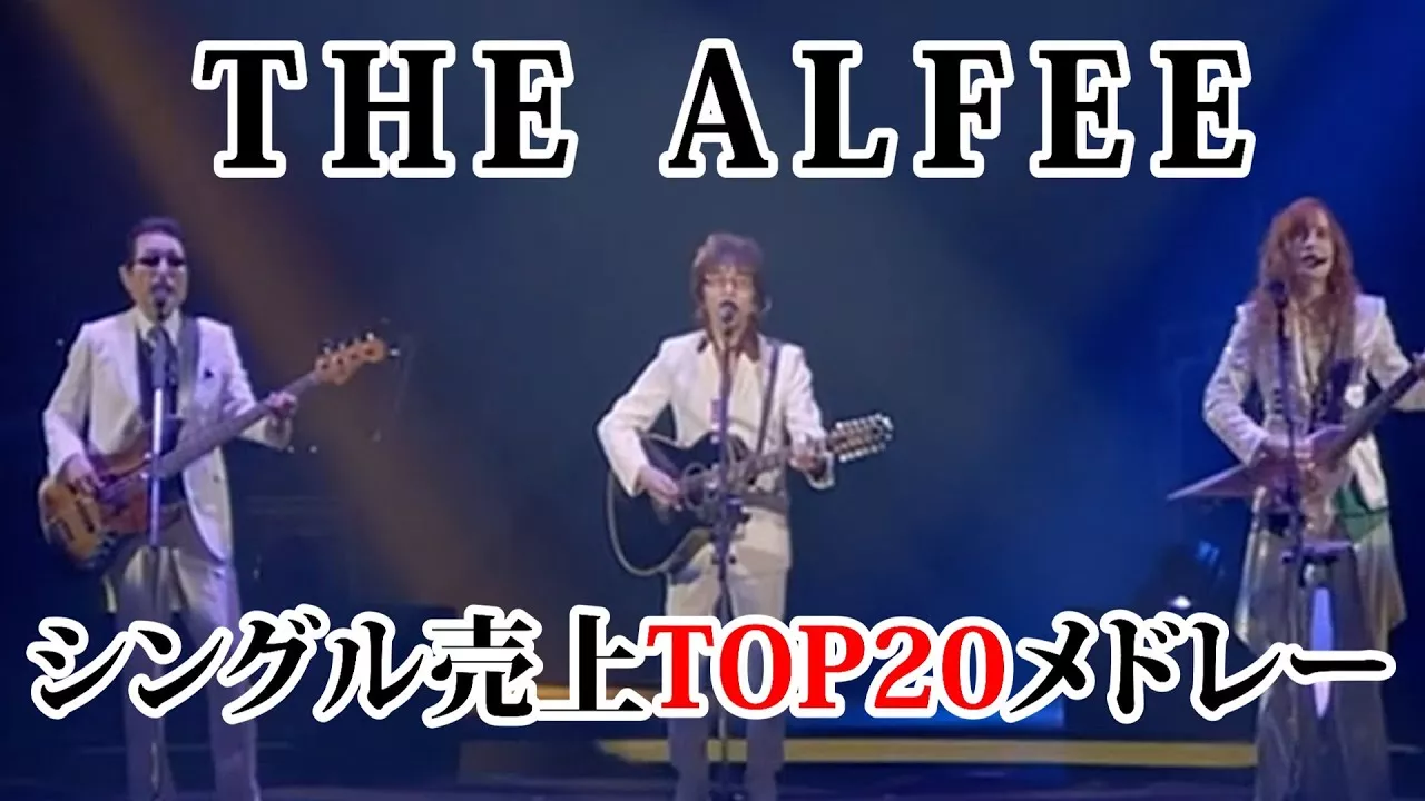 ALFEE 51st Anniversary Spring Celebration 福岡 当選しました!! 嬉しくてテンション上がったので、シングル売上TOP20メドレー作っちゃいました 参考サイト https://www.oricon.co.jp/prof/1491/rank/single/ 以下にフル動画のリンクを貼っておきます 1.Promised Love https://www.youtube.com/watch?v=upY132b1yx8 2.星空のディスタンス https://www.youtube.com/watch?v=dlHFomUAL6M 3.LOVE NEVER DIES https://www.youtube.com/watch?v=j53nmYISPAQ 4.メリーアン https://www.youtube.com/watch?v=8cjOQfSKiX8 5.恋人達のペイヴメント https://www.youtube.com/watch?v=RdaxNroGSbQ 6.STARSHIP -光を求めて- https://www.youtube.com/watch?v=GhJZ2Ax_R8o 7.シンデレラは眠れない https://www.youtube.com/watch?v=Sh-eVQXN4J4 8.希望の鐘が鳴る朝に https://www.youtube.com/watch?v=d3ONWHrx0go 9.まだ見ぬ君への愛の詩 https://www.youtube.com/watch?v=iAPGuCvnBgQ 10.Brave Love ~Galaxy Express 999 https://www.youtube.com/watch?v=EdZZd_Zg1_I 11.BELIEVE https://www.youtube.com/watch?v=BTRwbRx5mTE 12.サファイアの瞳 https://www.youtube.com/watch?v=mK6-ys4onpw 13.霧のソフィア https://www.youtube.com/watch?v=-Y43JkBR3tM 14.SWEAT & TEARS https://www.youtube.com/watch?v=Kv61Ps8dtZs 15.君が通り過ぎたあとに ーDON’T PASS ME BYー https://www.youtube.com/watch?v=DAlnfNXp4OY 16.風曜日、君をつれて https://www.youtube.com/watch?v=hNJVN2NKfRY 17.Rockdom ー風に吹かれてー https://www.youtube.com/watch?v=z24PI9n2T_I 18.白夜 -byaku-ya- https://www.youtube.com/watch?v=2PNLbfOMcU0 19.My Truth https://www.youtube.com/watch?v=rvcoqSIA2dQ 20.もう一度君に逢いたい https://www.youtube.com/watch?v=UdZjnmjEwCs