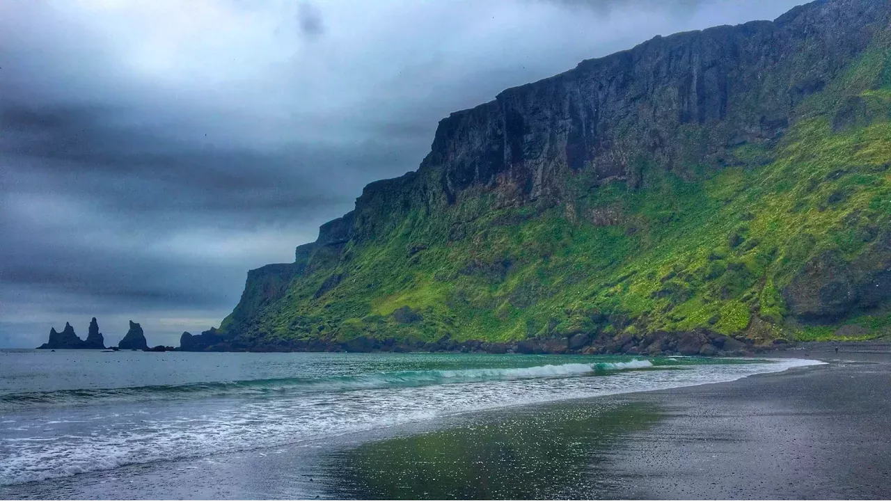 Vík is the Southern-most village in Iceland and features a beautiful black sand beach (often considered one of the world's top ten black sand beaches). The beach ends in mossy boulders guarding steep green cliffs. The village has about 300 inhabitants, but many more visitors. A quaint church and graveyard sit on a hill overlooking the village. Vik is located along the Ring Road and a short distance from the can't-miss sights of Reynisfjara Beach and Dyrholaey.