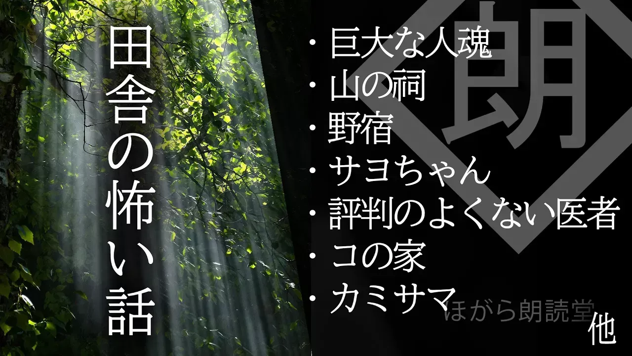 00:00:00 OP 00:00:11 雪の降る日に外に出ない理由 00:11:27 巨大な人魂 00:13:46 山の祠 00:18:21 野宿 00:20:54 サヨちゃん 00:28:19 S県の田舎の方にある廃神社 00:37:33 評判のよくない医者 00:40:52 外に出てはいけない日 00:45:14 コの家 00:52:22 「一番の宝ものなーんだ?」. 00:54:41 ドライブ 01:00:45 カミサマ リクエストや質問、怖い話等の投稿はこちらまで。(マシュマロ質問箱) https://marshmallow-qa.com/hogara_rodoku ほがら朗読堂 ニコニコ支店 https://www.nicovideo.jp/restriction.html?error=nc-accessrestrictions-003 twitterはこちら https://twitter.com/hogara_rodoku -------------------------- #ほがら朗読堂#朗読