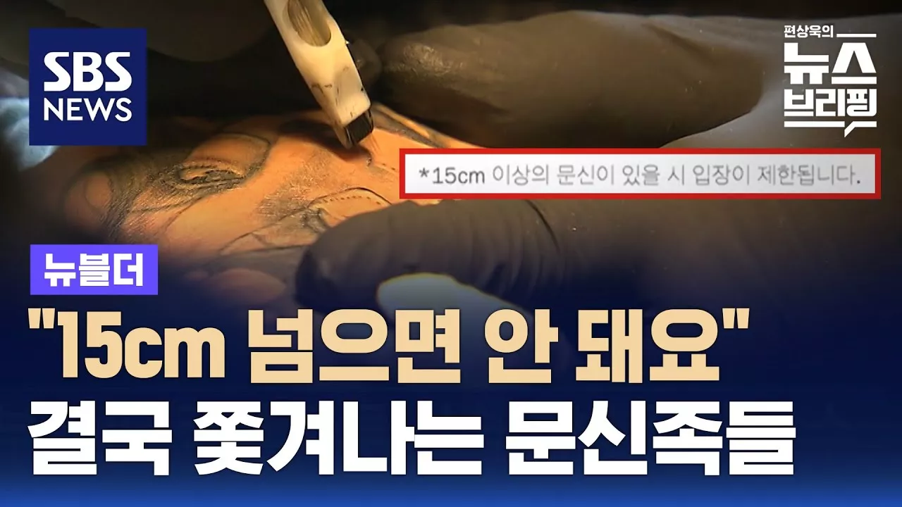 우리나라에서 문신, 그러니까 타투를 한 사람만 1천300만 명에 달한다고 합니다. 시장 규모는 1조 2천억 원으로 추산되고 있는데요. 유명 연예인들이 타투를 한 모습도 쉽게 찾아볼 수 있게 됐죠. 그런데 이 타투를 두고 매번 논란거리가 되는 게 있습니다. 바로 '노 타투존' 입니다. 수영장이나 헬스장을 중심으로 타투가 있는 사람의 출입을 제한하는 곳들이 생기고 있는 건데요. 서울의 한 유명 호텔 홈페이지 안내문입니다. '15㎝ 이상의 문신'이 있다면 수영장 입장이 제한된다고 적혔는데요. 수영장을 이용하려면 문신이 가려지는 수영복 등을 착용하라고 안내했습니다. 이른바 노 타투존 입니다. 서울의 또 다른 호텔도 헬스장 이용 시 '다른 사람에게 불편함을 줄 정도로 과도한 문신이 있다면, 출입이 제한될 수 있다'고 공지합니다. 이 외에 일반 헬스장에서도 '과도한 문신 노출 자제' 등을 입장 조건으로 내세우는 곳이 속속 생겨나고 있다고 합니다. 이런 노 타투존을 두고 의견은 분분합니다. 찬성하는 쪽은 지나친 타투가 다른 사람들에게 불안감을 조성하는 경우도 있단 입장이고요, 반대하는 쪽에선 타투 문화가 대중화된 상황에서 개인의 자유를 억압하는 거라고 주장합니다. [김헌식/ 대중문화평론가 : 어떤 특정 '존'에서의 차별 문제까지 결합하면서 이게 더 뜨거운 화두가 된 것 같습니다. 현실에선 타투에 대해서 문화적으로 부정적 인식이 그동안 있어왔기 때문에, 그걸 왜 부정적으로 생각하느냐 라고 무조건 항변하기보다는 적절한 수준을 유지하는 것도 좀 필요하다고 보거든요. 너무 과도하지 않은 타투 같은 경우에는 유연하게 좀 허용을 한다거나 과도기적인 과정이 필요할 것 같습니다.] 한편 현행법상 타투 시술은 의료행위라서 의료인만 가능합니다. 하지만 수요가 증가하면서 정부는 비의료인도 시술할 수 있도록 개방하기 위한 절차에 착수한 상태입니다. (영상편집 : 문이진) ☞더 자세한 정보 https://news.sbs.co.kr/news/endPage.do?news_id=N1007846366&plink=LINK&cooper=YOUTUBE ☞[뉴블더] 기사 모아보기 https://news.sbs.co.kr/news/newsPlusList.do?themeId=10000000332&plink=LINK&cooper=YOUTUBE ▶SBS 뉴스 채널 구독하기 : https://www.youtube.com/channel/UCkinYTS9IHqOEwR1Sze2JTw?sub_confirmation=1 ♨지금 뜨거운 이슈, 함께 토론하기(스프 구독) : https://premium.sbs.co.kr/ ▶SBS 뉴스 라이브 : https://www.youtube.com/c/sbsnews8/live , https://news.sbs.co.kr/news/live.do ▶SBS 뉴스 제보하기 홈페이지: https://news.sbs.co.kr/news/inform.do 애플리케이션: 'SBS뉴스' 앱 설치하고 제보 - https://news.sbs.co.kr/news/app.do 카카오톡: 'SBS뉴스'와 친구 맺고 채팅 - https://pf.kakao.com/_ewsdq/chat 페이스북: 'SBS뉴스' 메시지 전송 - https://www.facebook.com/unsupportedbrowser 이메일: sbs8news@sbs.co.kr 문자 # 누르고 6000 전화: 02-2113-6000 홈페이지: https://news.sbs.co.kr/ 페이스북: https://www.facebook.com/unsupportedbrowser X(구:트위터): https://www.twitter.com/sbs8news 카카오톡: https://pf.kakao.com/_ewsdq 인스타그램: https://www.facebook.com/unsupportedbrowser Copyright Ⓒ SBS. All rights reserved. 무단 전재, 재배포 및 AI학습 이용 금지