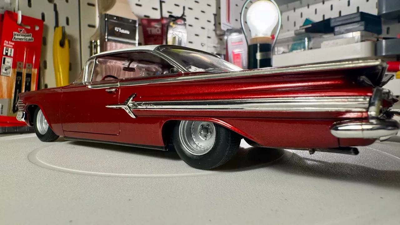 Building and Painting a mildly customised version of the 1:25 Revell 1960 Impala with Tamiya rattle cans 😁 (tamiya ts spray cans) The wheels are out of an AMT 55 Chevy Bel Air sedan kit 🫡 Always follow the directions and be safe when building and painting model kits.