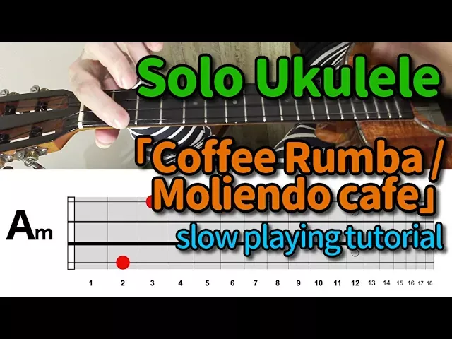 この動画のTAB譜(タブ譜)の購入はコチラ Piascore → https://store.piascore.com/scores/122217 ウクレレ関連動画 ウクレレチューニング解説https://www.youtube.com/watch?v=9d8_lf8KZFA ウクレレのメロディー弾き右手 → https://www.youtube.com/watch?v=50Im3-dvDqs ウクレレ全ストラミング解説 → https://www.youtube.com/watch?v=48lRWv371Ts ウクレレ押弦の力加減 → https://www.youtube.com/watch?v=9rP0S1ZIvO0 ウクレレの弦とフレット番号 → https://www.youtube.com/watch?v=WlDKnVl81lo ウクレレの構え方 → https://www.youtube.com/watch?v=F7AXHAlDhGw おすすめソロウクレレ動画 歩いて帰ろう(斉藤和義) ソロウクレレ参考動画 → https://www.youtube.com/watch?v=4psoWnkUqkA 糸(中島みゆき) ソロウクレレ参考動画 → https://www.youtube.com/watch?v=Fj7nycrdPV8 涙のキッス(サザンオールスターズ) ソロウクレレ参考動画 → https://www.youtube.com/watch?v=4c1KiNR-Tcs クリスマス・イブ(山下達郎)ソロウクレレ参考動画 → https://www.youtube.com/watch?v=mgBolSlSCKE チョーさん(長田トシツグ)ホームページ https://simaneiitoko.wixsite.com/ngtweb 今回の題材はコーヒールンバ。ナニワの高速ウクレレ少年近藤利樹くんが演奏していたコーヒールンバを土台にして少し簡単なアレンジにしてみました♪ みなさんの演奏の参考になれば幸いです。 ※ひとつ訂正があります。演奏の中でDm, E7, Am, AmM7, Am7,と続く部分のダイアグラムに❌(ミュート)がありますが、演奏の指の方がミュートが不完全でした。大変失礼しました。正しくはダイアグラム通りミュートが正しいので、左手中指は3弦を押さえながら指の頭を4弦に少し当ててミュートしながら演奏してください。 - - - - - - - - - - - - - - - - - - - - - - - TAB譜はわかりにくい&どの指を使うのかわからないと思っている人は少なくないんじゃないでしょうか?そんな方のために自分目線で押さえるポジションが見てすぐわかるレッスン動画を作りました♪ 動画の補足解説 コードが表示されますがそれは一旦無視して、使っている指と押える場所と順序を上下の画面を見比べながら覚えてみてください。ソロウクレレはコードの形をするだけでメロディーまで演奏できることがたくさんあるので、あえて1音1音表示せずにコードの形のまま表示するようにしています。さらに弾き語りやアドリブなどをする時の参考にコードも活用してみてください♪ - - - - - - - - - - - - - - - - - - - - - - - coffee rumba・moliendo cafe / solo ukulele cover / slow playing tutorial using ukulele : KAMAKA HF-3 D2i - - - - - - - - - - - - - - - - - - - - - - - チョーさんミュージックチャンネル 日本の田舎でギタリスト&ウクレレプレーヤーとして活動しているチョーさんが、ミュージックビデオの発信、演奏の解説や練習方法の伝授、アドリブや音楽理論を解説するチャンネルです。その他音楽に関係のありそうなものであればそれもついでにUPしていこうと思っています♪ チャンネル登録よろしくお願いします♪
